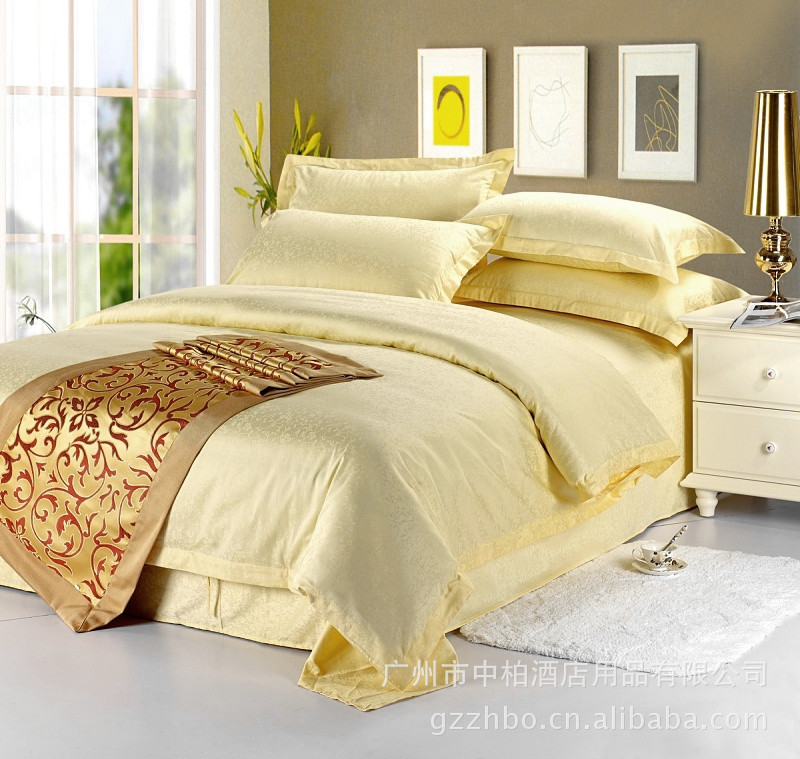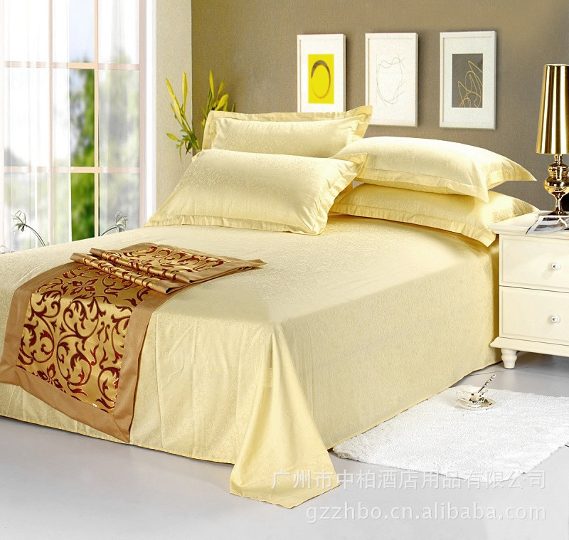 【名称】: 高密提花面料 米黄色牵牛花 酒店客房床品 床单 被套 枕套