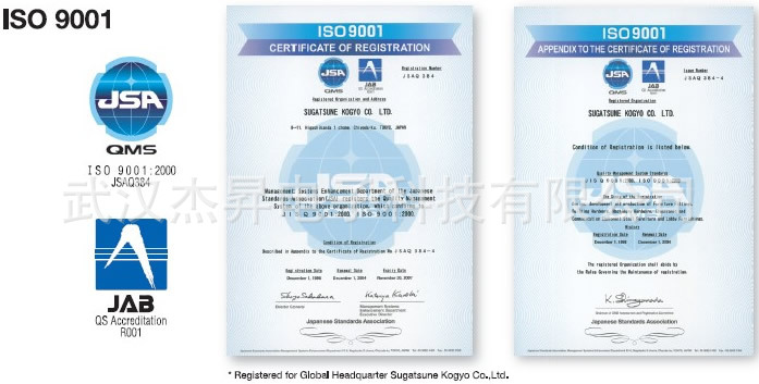 世嘉智尼sugatsune 已取得质量管理体系ISO90001认证(审核注册)