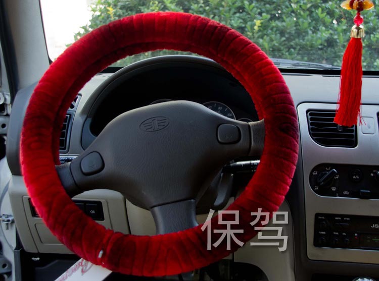 仿羊毛压花方向盘套红色