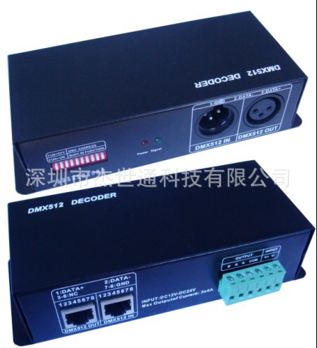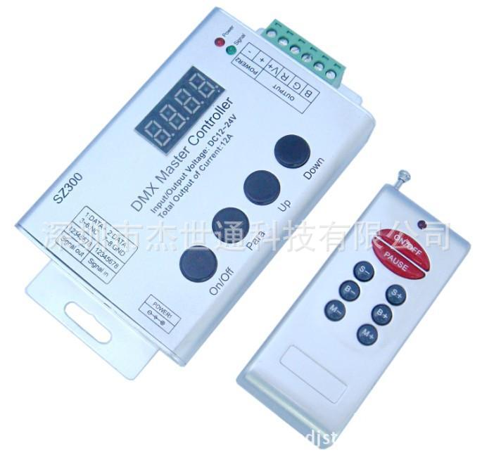 DMX512主控制器采用先进电脑控制芯片,发送国际上广泛采用的DMX-512标准数码控制信号;可与DMX512解码器连接进行控制,并可增加解码器不断扩展输出通道,以实现整体的同步静态、跳变、渐变或者点与点之间频闪,跑马,流水等LED灯光变化效果;采用8键无线射频遥控和控制器上的4个按键进行模式选择,速度、亮度以及分控个数调节。