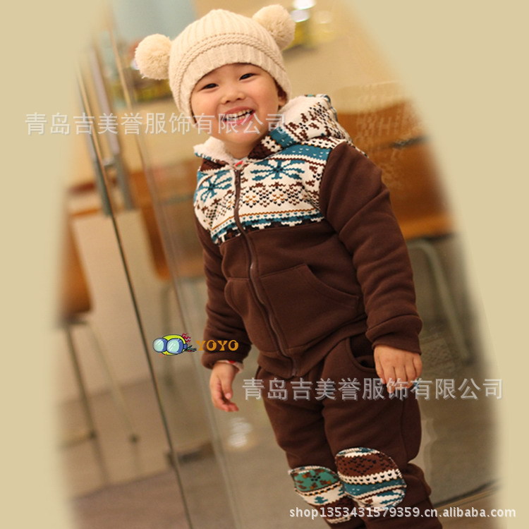 2012冬季新款/儿童加绒加厚套装/男童女童保暖套装