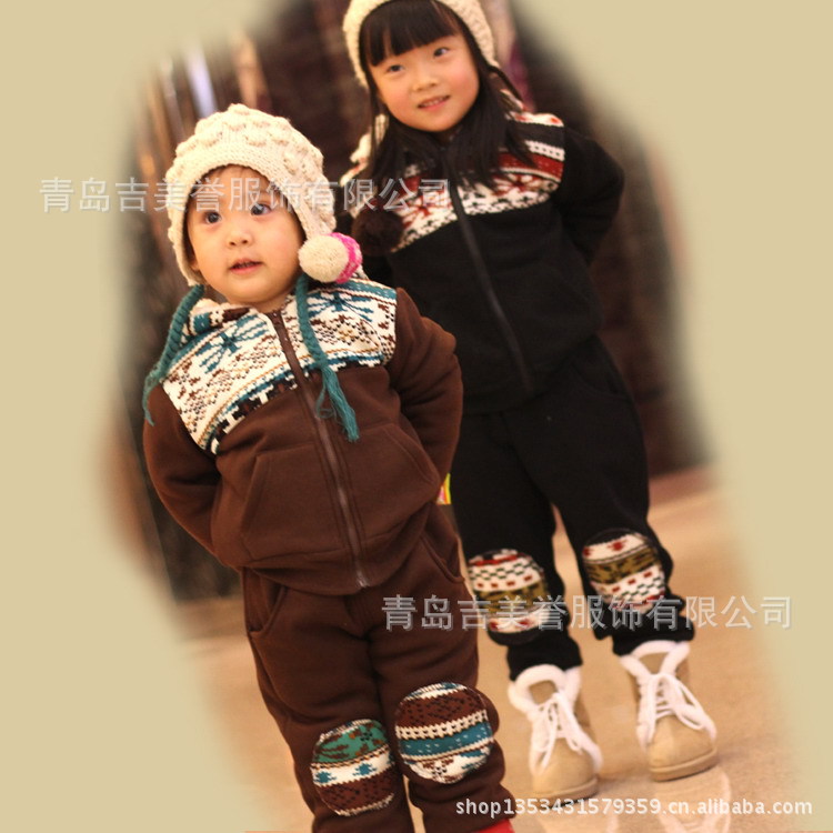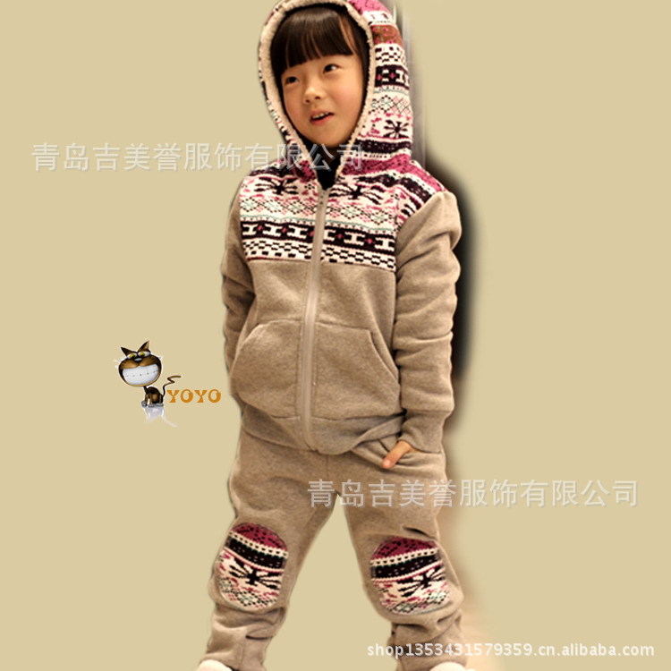 2012冬季童套装 加绒加厚羊羔毛套装 童羊羔绒套装
