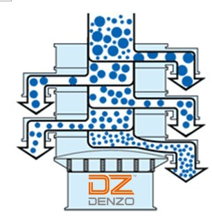 DZ系列粉状筛分机针对再生纤维中的非纤维性杂质多为轻杂质的特点设计为升流式结构。 浆料的筛体底部进浆。 短小纤维通过分级筛鼓排出设备体外; 长纤维依次升流至筛选筛鼓段, 通过筛选筛鼓而排出设备体外; 非纤维性杂质再升流至顶部排渣口排出设备体外。 这种型式的分级筛避免了传统分级筛长短纤维均要通过筛选筛鼓而造成动力消耗增加的缺点。 同时,升流式结构的筛体大大降低了非纤维性杂质在筛选区内的停留时间, 从而提高了筛选效率。