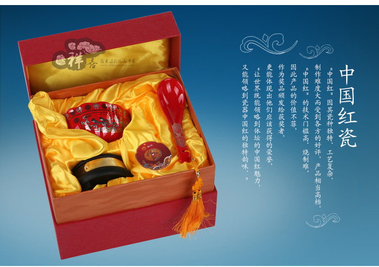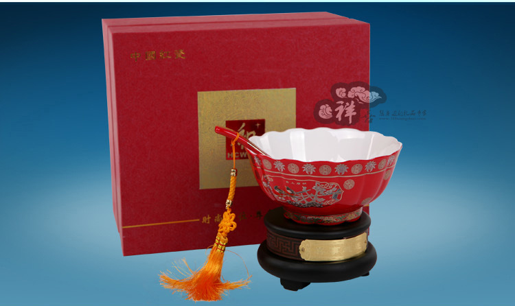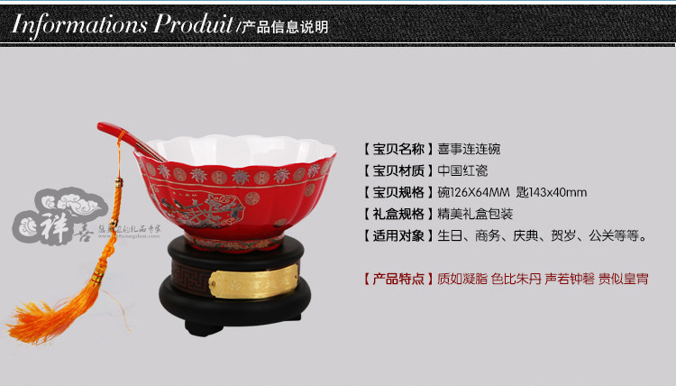 供应新款热销经典中国红瓷喜事连连碗 婚礼庆典家居装饰摆件