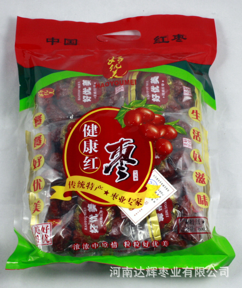 河南达辉枣业有限公司是一家从事枣制品研发、生产、销售的股份公司,位于河南省郑州市高新技术开发区国家大学科技园内,公司创立于2010年2月8日,主要产品有“好优美”枣片系列、水晶枣干系列、饴糖枣糕系列、红枣咖啡系列、保健枣粉系列(专为老人和女士设计)、多维枣糖系列、健康红系列、轩辕黄帝御枣系列、博士情系列、野酸枣系列、金丝小枣系列、枣白金系列等。公司系列产品已经在省内各大超市销售(如沃尔玛超市,大商新玛特超市等),外部已远销香港和澳门,出口东南亚及日本和韩国。