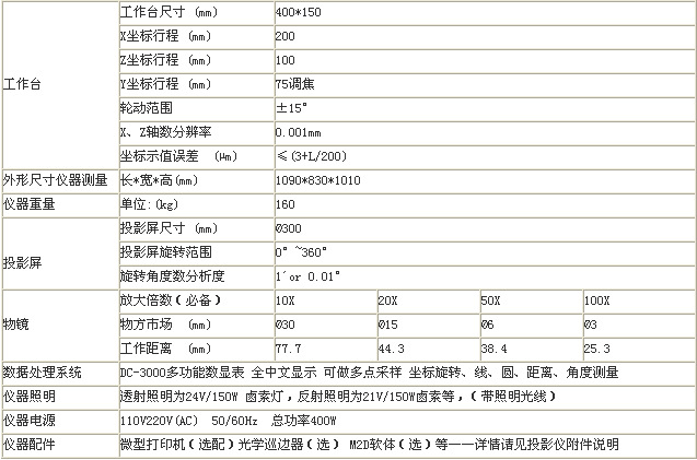 CPJ-3020W Ø 300mm卧式投影仪是光、机、电、一体化的精密高效计量仪器。它广泛用于机械、模具、仪表、电子、轻工等行业。是计量室和生产车间不可缺少的一种计量检定设备。本仪器能高效率的检测各种形状复杂工件的轮廓尺寸和表面形状,如样板、冲压件、凸轮、螺纹、齿轮、成形铣刀等各种工具、刀具和零件。测量数据可打印、输出。