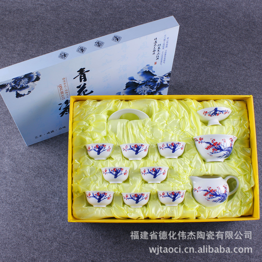 【品名】:自产自销 伟杰新品12件套青花瓷套装 零辐射环保青花瓷,陶瓷茶壶