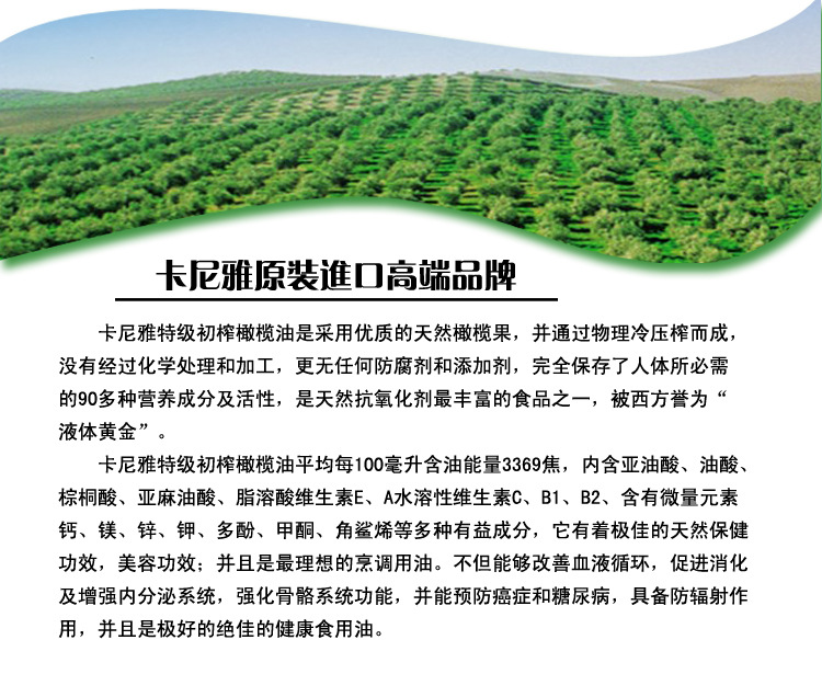 广州绿滋进出口有限公司是一家专业经营以地中海橄榄油产业为核心的高档食品进出口贸易公司。本着“务实,服务,诚信,卓越”的宗旨发展和壮大企业,服务于社会。 不断为消费者提供最安全,最健康,最美味的食品,是我们一贯奉行的企业理念。广州绿滋拥有专业精干的员工队伍,始终坚持“热情、勤勉、求实、进取、严谨、团结”的企业精神,诚信经营,信誉至上,以建立和发展全民健康事业为己任,以互惠互利、共同发展的态度广泛开展与各地经销商的全方位合作,以质量为龙头、以品牌为资本、以管理为基础、以顾客为中心,竭诚为您提供高品质的产品和热情周到的服务。