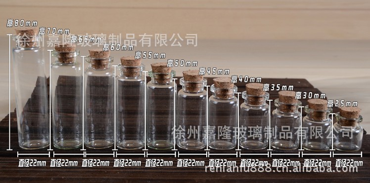 我们专业生产玻璃瓶 许愿瓶 漂流瓶 等各种工艺瓶 22系列玻璃瓶最常用的瓶子 可以作为医药用瓶 也可以作为许愿瓶 漂流瓶等