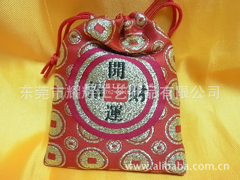 东莞市耀辉工艺礼品有限公司 .专业日本福袋、护身符、台湾香包、卸守、礼品、工艺品、饰品、电脑商标、服装辅料、礼品辅料 、织唛、吊牌.业务范围遍及全国和世界各地,已经扩展到欧、美、日、韩、等国。产品实行严格的品质过程控制,能为客户提供个性化的样板开发设计、打样、量产、送货运输一条龙服务。★我们的产品: 日本福袋、护身符、台湾香包、卸守、云南民族挂件、日本、韩国、台湾、佛教用品、道教用品、民间编织工艺品、中国结福袋、纺织礼品、冲棉福袋香袋、事业御守、汽车香包、祈福袋、佛教香包、香囊、荷包、小布包、布袋、平安符、恋爱御守、学业成就卸守、健康卸守、开运卸守、姻缘、情侣挂件、结缘卸守、情侣配件、交通安全御守、魅力倍增卸守、除菌、祛病增寿护身符。★服务宗旨: 我们坚持"客户至上、诚信守誉、质量第一、共创双赢"的宗旨;通过电话、传真、电邮、alibaba及qq等等各种个性化形式,诚心诚意地为您提供售前需求的洽谈、资料整理、相关信息的传递、按质按量生产及售后服务的跟踪。 手机:13712084762 QQ:185568542 电话:0769-28827435 传真:0769-22766940欢迎各业界朋友们和广大新老客户咨询、来公司参观指导掷重声明:以上所有图片产品是由中国广东省东莞市耀辉工艺礼品有限公司为客户个性化设计定制的,仅供参考,属非卖品,产品及商标所属权为客户拥有,盗图必究。欢迎各界客户咨询、来厂参观指导!【产品名称】:开光护身符/精品刺绣【福袋】锦囊/保平安/平安符/御守【产品规格】:长6cm宽4cm、挂绳总长15cm(内可装:袖珍楞严神咒、铜钱、七彩宝石、香球、香珠、香料、天然石、公仔棉等,按客户要求)【产品材质】:精品刺绣【产品用途】:可各大型礼品企业、玩具公司、景点和寺庙广告宣传用,亦可点缀在车上、手机、挂于居室、置于抽屉,挂在包包,衣服上,也可打开放进宗教符纸用作装纳纸符、布符的符袋,改运辟邪保平安,寄托良好祝愿,为您带来好运与吉祥。(注:此产品图片是耀辉公司为客户专业设计,只供参考,不作销售)1.我司所有商品均可个性化设计制作订购。因为光线关系,难免图片跟实物颜色上微微有偏差。请谅解!2.我司网上有货的商品,可直接拍下并付款,我们会为你尽快安排发货。另外,可个性化设计制作市场上各种畅销品种以满足您特殊情况,如果需求请会立即通知我们订购,买家可以选择网上付款或者询问客服咨询。我们一切都会以买家的意愿来处理。3.我司会尽力在筛选货物和包装上下功夫,避免买家不愉快的事情发生。但是在运输过程中,难免还是会有极小的概率货物受到损坏。所以,当您收到快递时,千万别急着签收。请仔细检查外包装是否完好,确认无误后再签收包裹。买家收到的货物出现问题,请及时联系我司客服和相关人员,我们会在第一时间为您全权处理。让买家买的放心,用的安心。4.七天无理由退换货。退货须知(我司严格按网上交易七天无理由退换货规则):(1)退货时限为,从买家签收商品之日开始算起,七天之内。(2)退货商品必须未破坏原包装,不影响商家二次销售。(3)质量问题的运费由我司全部承担,非质量问题的运费由买家全部承担。5.完成交易后,对于我们的服务,请作出评价!原则上我们不接受中﹑差评,买家有任何问题,请及时联系卖家,卖家会在第一时间为您解决处理,保证达到您满意,最后祝愿您在本司订购愉快.