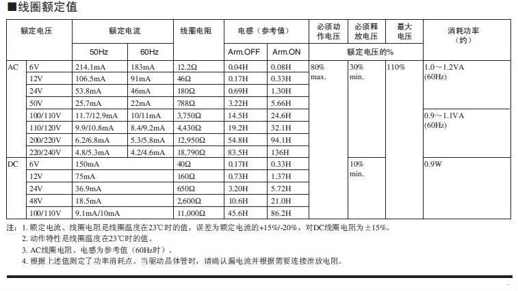 寿命 | 机械(开关频率18,000次/小时) | AC线圈 | 40,000,000次以上 |