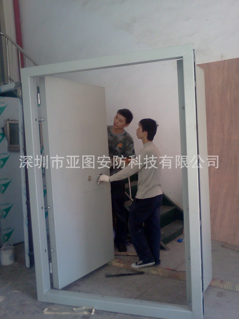 深圳市亚图安防科技有限公司防爆门概述: 钢质防爆门 指用钢质材料做门框、门扇及骨架,门体内部可填充隔热材料,并配以铰链、锁、泄波装置、接地装置等锁组成的能有效抗静电、不产生闪爆点的门。名称代号为FBM。 钢质抗爆门 指用钢质材料做门框、门扇及骨架,门体内部可填充隔热材料,并配以特种铰链、多点连动锁点、抗暴插销、抗暴中挺、逃生锁、闭门器锁组成的能有效抗爆炸冲击波载荷的门。名称代号为KBM。 钢质泄爆门 指用钢质材料做门框、门扇及骨架,门体内部可填充隔热材料,并配以特种铰链、逃生锁、泄爆装置、闭门器锁组成的能有效倾泄爆炸冲击波载荷的门。名称代号为XBM。 钢质抗爆窗 指用钢质材料做窗框及横挺和竖挺,并配以能抗一定爆炸冲击波载荷玻璃体完整性要求的窗。名称代号为KBC。 钢质泄爆窗 指用钢质材料做窗框及横挺和竖挺,并配以能抗一定冲击波载荷的玻璃体或轻质材料、特种铰链、泄爆装置、防飞溅装置所组成能有效倾泄爆炸冲击波载荷完整性要求的窗。名称代号为XBC。 钢质防弹门窗 指用钢质材料做门、窗框及面板,并配以能抗子弹穿透和飞溅物的特种材料、特种配件等所组成的完整性要求的门窗。名称代号为FDM或FDC。 名称代号: 门窗规格: 用洞口尺寸(洞口宽度×洞口高度,单位mm)表示。 防爆门分类: 1.按门窗体的功能分为防爆门、抗爆门、泄爆门、抗爆泄爆门;抗爆窗、泄爆窗。 2.按门扇和窗扇的数量和型式分:单开门、双开门、双开子母门、带视窗单开门、带视窗双开门、固定窗、活动窗、上部固定下部活动门。 3.按门扇启闭方式分为平开门窗、平移门窗、垂直提升门。 4.按开启的动力型式分为手动门窗、电动门窗、气动门窗。 5.按附加功能分为保温型门窗、防火型门窗、防辐射型门窗、泄水型门窗、气密型门窗、逃生型门等。 6.按爆炸源来自方向分为内置式门窗和外置式门窗。 7.按抗爆力等级分为10KPa、20KPa、30KPa、40KPa、50KPa、60KPa、70KPa……,可根据实际需要压力定。 8.抗爆门窗按有效抗冲击波载荷后的破坏程度分Ⅰ、Ⅱ、Ⅲ、Ⅳ四个等级: Ⅰ级——门窗在设计值范围内有效抗冲击波载荷后门窗无损坏和变形,事后能继续使用; Ⅱ级——门窗在设计值范围内有效抗冲击波载荷后门窗有轻微变形,事后能开关; Ⅲ级——门窗在设计值范围内有效抗冲击波载荷后门窗变形,事后能打开; Ⅳ级——门窗在设计值范围内有效抗冲击波载荷后门窗严重变形,事后不能有效打开和关闭 双开抗爆门 单开抗爆门 子母型抗爆门 抗爆窗 平移气动防爆门 泄爆门 泄爆窗 联系电话 13825292922 0755 26433389 向小姐