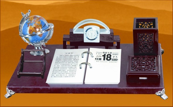 多功能红木台历更适用于办公, 配笔筒可以用于放笔放剪刀等,多色的便笺纸方便记事,内藏式文具盒可放置办公小用品,如:回针、相皮擦、钉书钉等小物品,不占地方又方便工作。 精美名片座更显示自身尊贵,展示自我风范,表,是精致表芯耐用电池,走时精确,外观优雅大方。