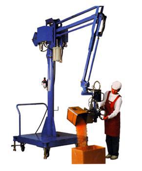 助力机械手可完成重物抓取 搬运 翻转 对接 微调角度等三维空间移载动作。为物料上下线和生产部品组装提供极理想的助力搬运和组装工具。助力机械手在降低作业劳动强度提供物料安全搬运的同时,也可满足特殊环境如防爆车间,人员无法进入的危险场所提供系统解决方案。 助力机械手在操作人员的轻松操作下,可完成复杂的自动机器人的许多工作,而生产及使用成本却大大低于自动机器人,同时使用范围较之自动机器人更为广泛,灵活性和机动性更大。 将在在汽车制造,家电视讯,金属制造工业 铸造 航空 以及造纸,食品烟草,玻璃陶瓷, 制药,化工石油等行业为生产的优化发挥着巨大的作用。助力机械手工作原理如下: 通过检测吸盘或机械手末端夹具和平衡气缸内气体压力,能自动识别机械手臂上有无载荷,并经气动逻辑控制回路自动调整平衡气缸内的气压,达到自动平衡的目的。工作时,重物犹如悬浮在空中,可避免产品对接时的碰撞。在机械手臂的工作范围内,操作人员可将其前后左右上下轻松移动到任何位置,人员本身可轻松操作。同时,气动回路还有防止误操作掉物和失压保护等连锁保护功能。非常重要的一点是,气动平衡吊整机无须电控系统,只需压缩空气和真空源(视工作情况)即可工作,非常方便。 A.助力机械手安装形式:1.底座移动式助力机械手---针对末端负载重量较小物品和可以更换工位时采用。2.立柱固定式助力机械手。 3.悬挂式助力机械手4.悬挂轨道移动式助力机械手。B.助力机械手机械手末端配置形式,根据物品的形式和搬运装配要求设计。1.真空吸取助力机械手 2.气动夹取助力机械手3.90度翻转助力机械手4.180度翻转助力机械手5.吊勾助力机械手 C.助力机械手运动空间:最大半径5000MM,360度旋转,有效起升高度达1600MM不等。助力机械手特点 : 1)操作简易快捷性:无随作业员的牵引力在上下 前后左右 三维空间自动帧测运行。 2)无重力省力化: 搬运最大重量时牵引力小于2公斤。 3)悬浮性无冲击力及不具有反弹力:可以确保产品组装时,柔性对接,避免普通起吊设备运行时的冲击性和反弹力。 4)定位精确:零重力悬浮状态,保证产品对接时随机移动精确定位。 5)可深入性:机械手前端工作头可以跨越障碍物 ,将工件送入加工中心等机器内部,完成物料抓取。 6)节约能源;整机无须电源,只需一根接入0.6MPA气源的管路即可完成所有工作。 7)安全性:精选世界最优质的气动元件来构建的机械手。产品经严格测试来确保用户能安全,可靠和长久有效使用。即使在意外切断气源的情况也不会坠落。