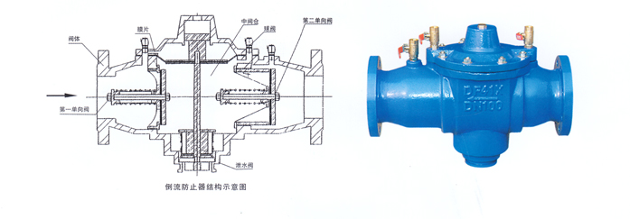 倒流防止器是一种严格限定管道中水只能单向流动的水力控制组合装置.它的功能是在任何工况下防止管道中的介质倒流,以达到避免倒流污染的目的.