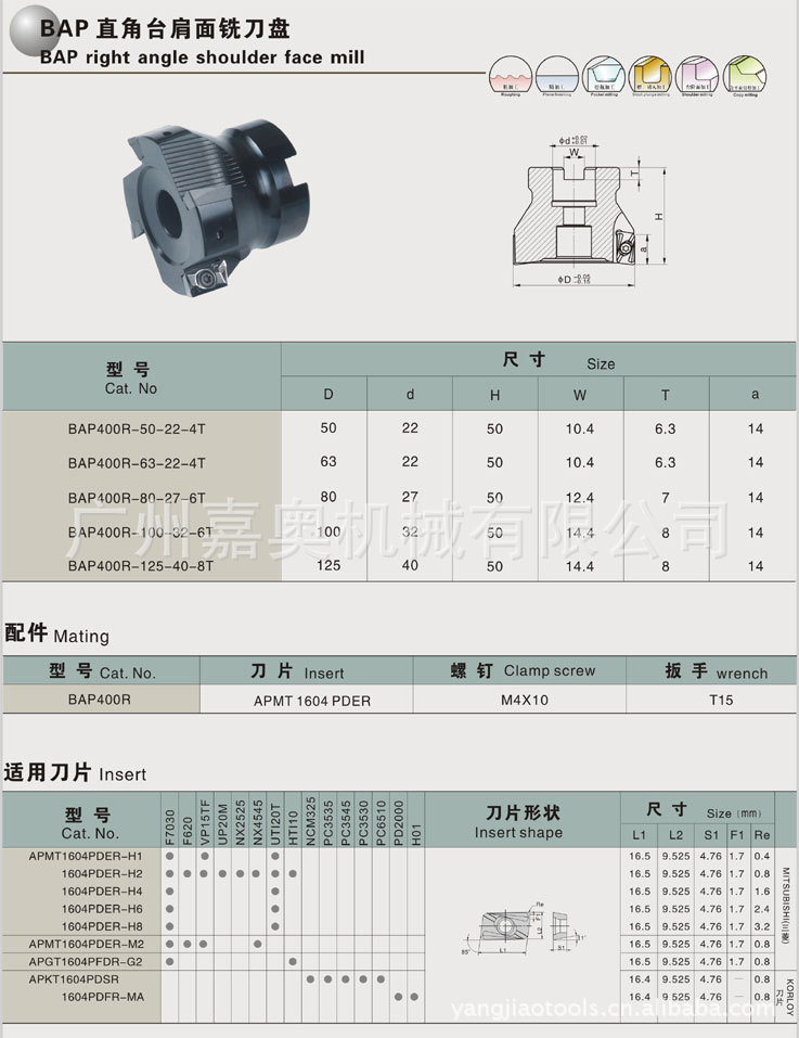 说明:适配多种材质刀片,可适用铝、钢铣削,螺丝锁紧,容屑空间大,排屑好,切削轻快,阻力小。