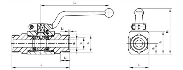 内螺纹连接 型号 | D1 | D2 | L1 | L2 | L3 | L4 | H1 | H2 | H3 | YJZQ-J10N | Ф10 | M18×1.5 | 78 | 14 | 105 | 32 | 16 | 36 | 76 | YJZQ-J15N | Ф15 | M22×1.5 | 86 | 16 | 147 | 38 | 19 | 45 | 80 | YJZQ-J20N | Ф20 | M27×2 | 108 | 18 | 185 | 48 | 25 | 55 | 101 | YJZQ-J25N | Ф25 | M33×2 | 116 | 20 | 185 | 57 | 28.5 | 64 | 111 | YJZQ-J32N | Ф32 | M42×2 | 136 | 22 | 240 | 75 | 37.5 | 84 | 134 | YJZQ-J40N | Ф40 | M48×2 | 148 | 24 | 240 | 85 | 42.5 | 95 | 165 | YJZQ-J50N | Ф50 | M64×2 | 180 | 26 | 240 | 104 | 52 | 112.5 | 180 |