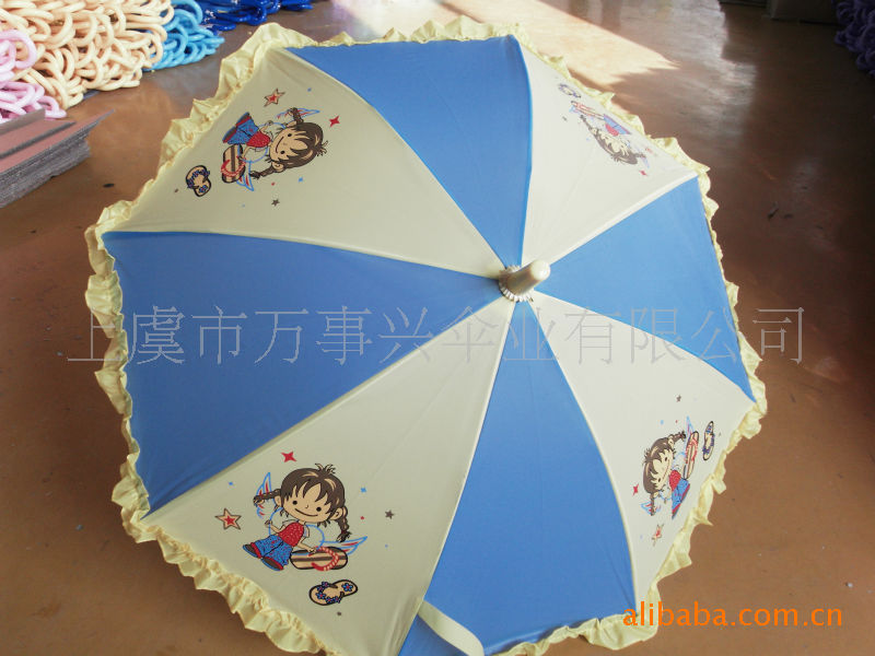 | 名称:EVA环保自动两色4片印花花边伞 | |