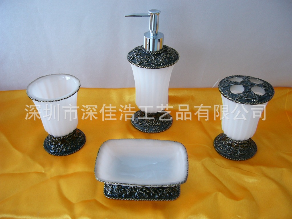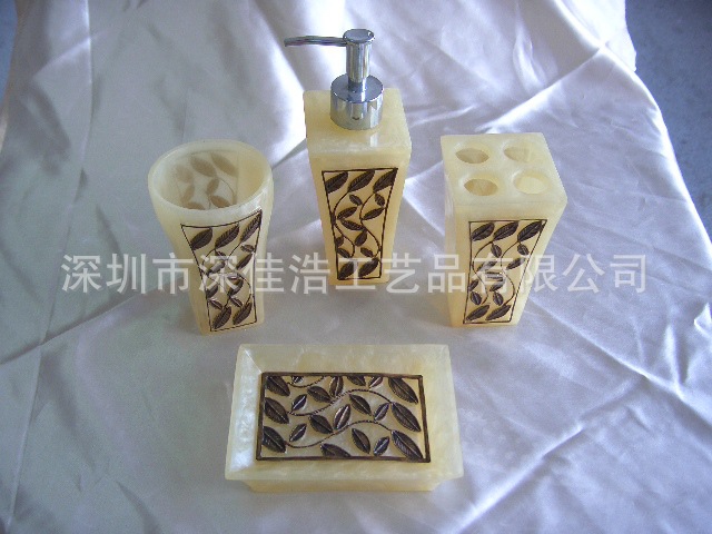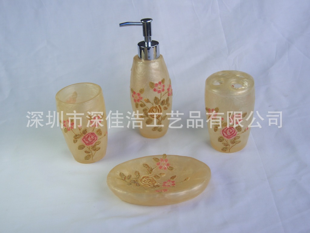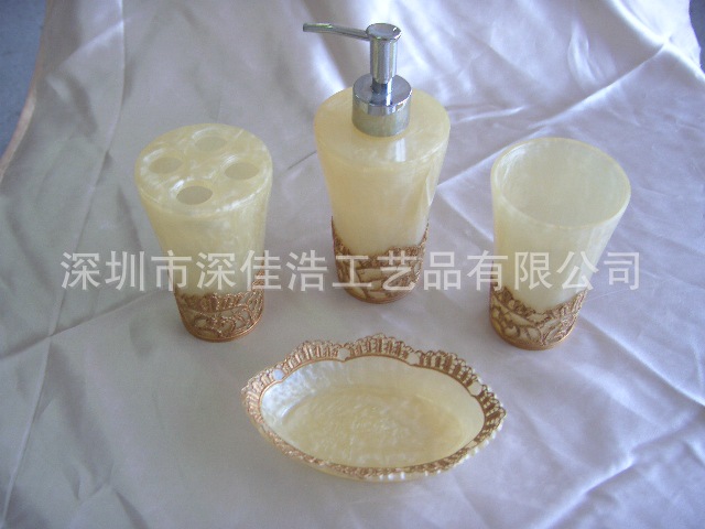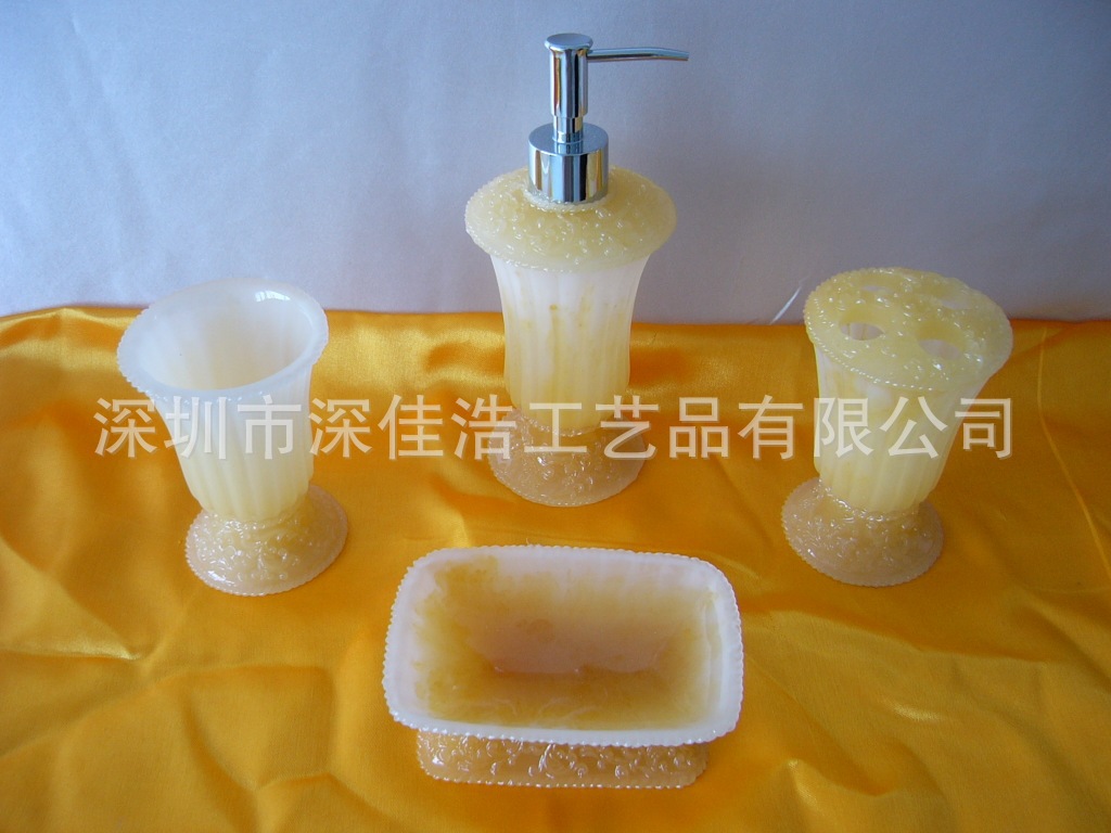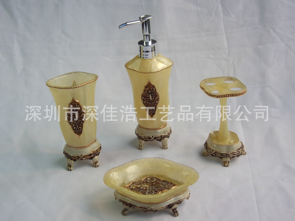 星级酒店树脂卫浴套件 黄珍珠+白珍珠贴花