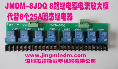 JMDM-8JDQ是由深圳市精敏数字机器有限公司自主研发的一款工业级高可靠的8路大功率继电器输出电流放大板,简称为8路继电器放大板,无
