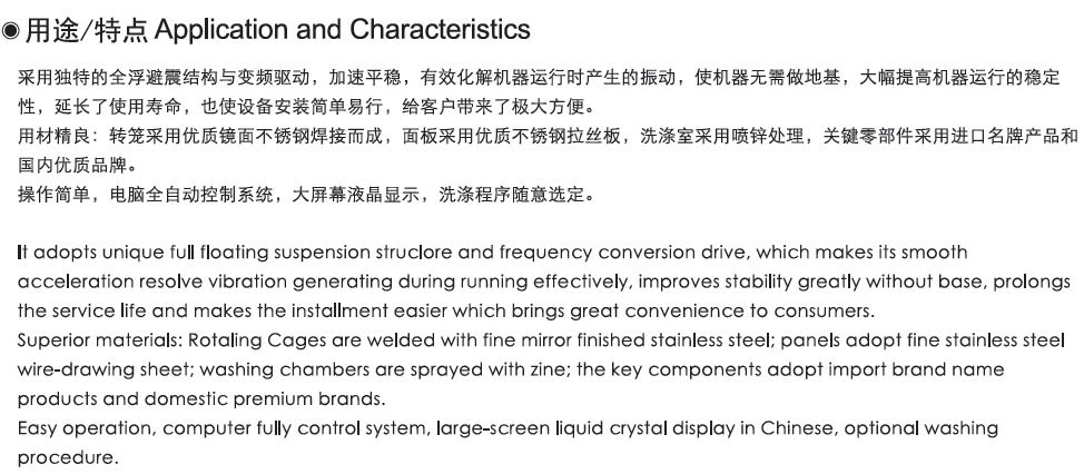 我们拥有雄厚的经济实力,强大的研发机构和高标准的制造基地。采用先进的生产技术,优质的原材料,专业生产干洗机、干洗机价格、干洗设备、洗涤设备、洗脱机、脱水机、全自动变频洗脱机、卧式洗衣机、全自动工业烘干机、多辊组合式烫干机、上海干洗机等洗涤设备。产品已通过ISO9001:2000国际质量管理体系认证,在行业中享有良好的信誉。