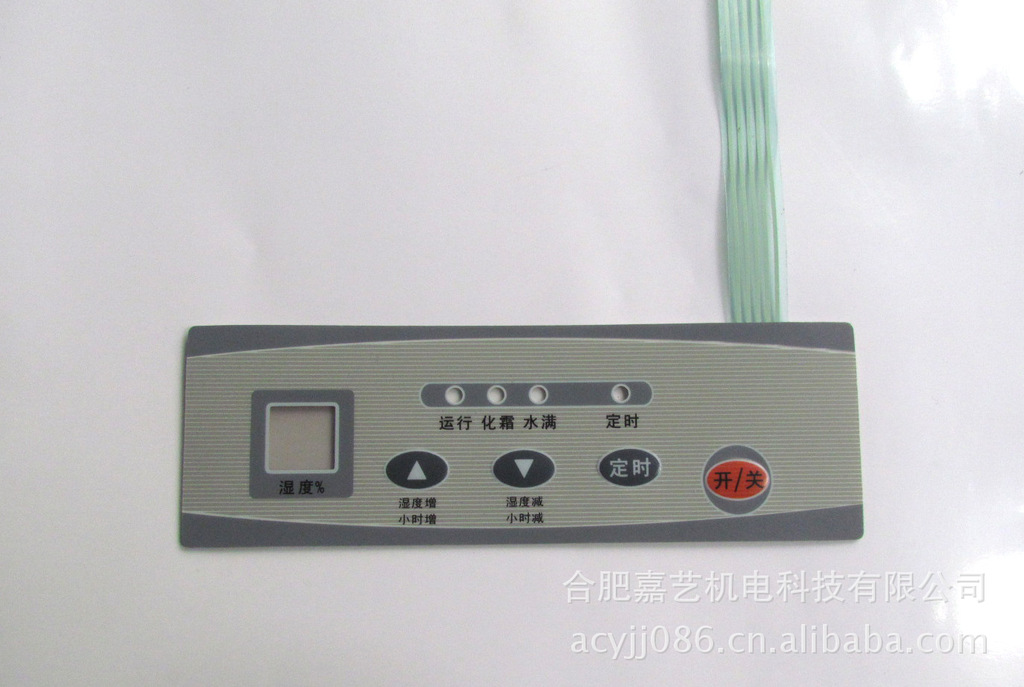 塑料基材厚度在0.25mm及以下称为薄膜,主要用作薄膜开关的面板层,其背面印有各种指示性的图案、文字来表示相应开关键位的操作区域,在厚度选择上应视面板及按键的大小而定,材料厚,触动力加大,反应迟钝;材料过薄,触动时手感差,回弹不明显。厚度在0.25mm以上称为板材,不适合立体键成型,可用作无按键操作区域的指示性的标牌面板,也可作为薄膜开关的衬板以提高其硬度