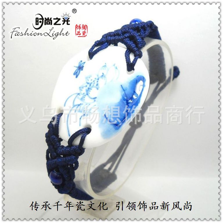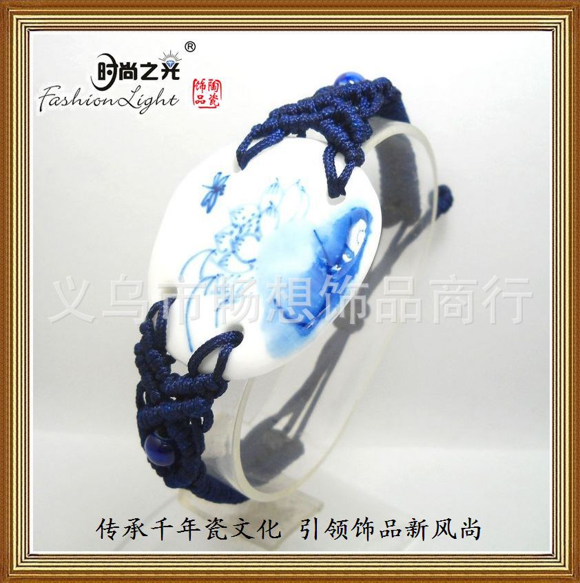 [厂家直销]景德镇民族陶瓷饰品 荷塘情趣 青花瓷手链(40*35MM)