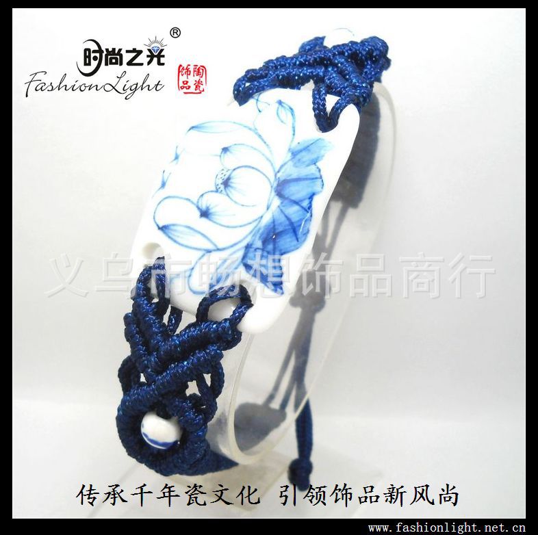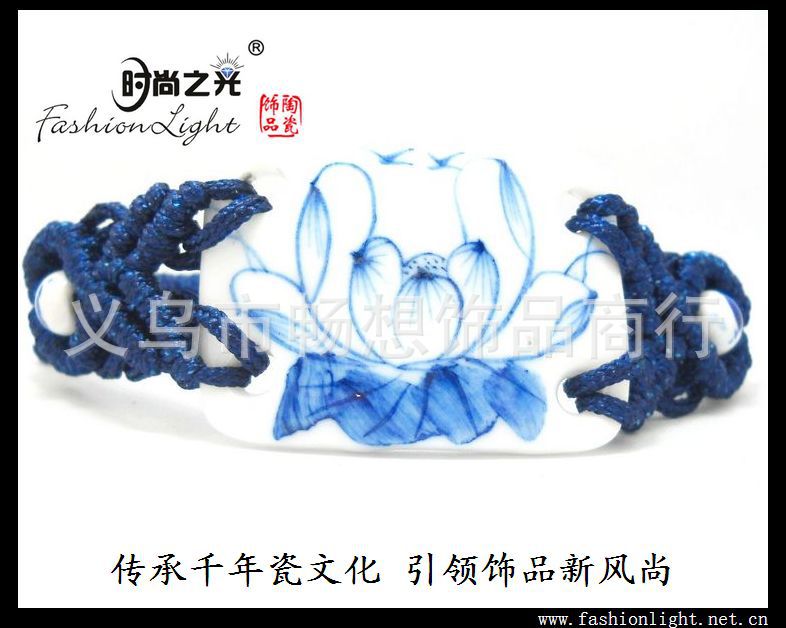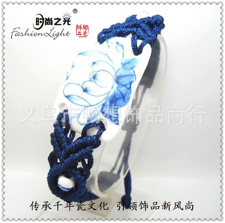 [厂家直销]景德镇民族陶瓷饰品 荷塘情趣 青花瓷手链(39*27MM)