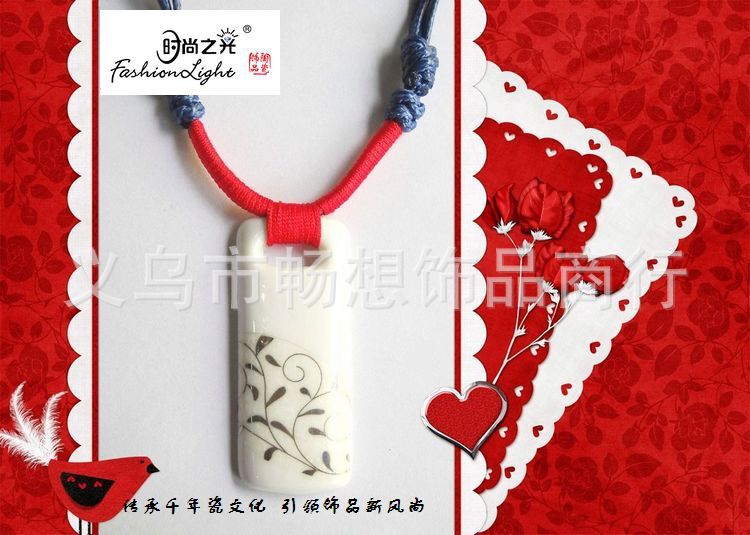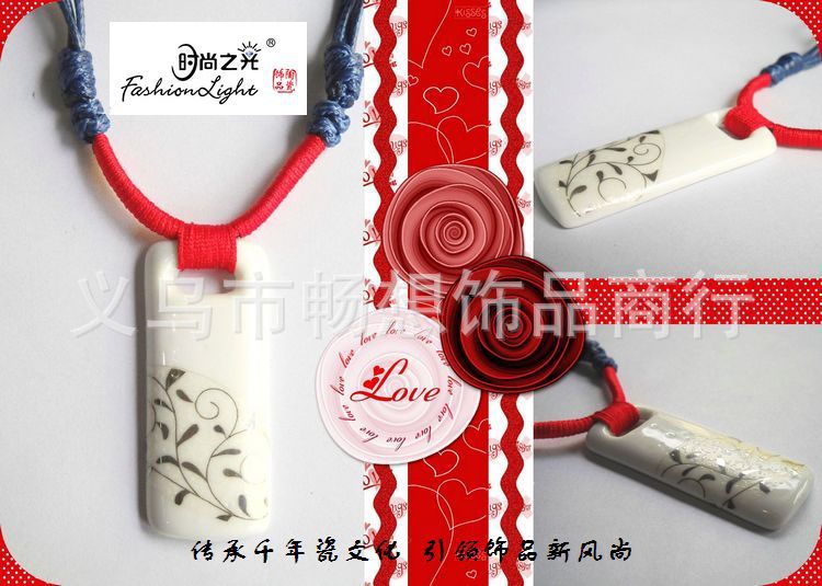 [厂家直销]时尚之光陶瓷饰品 粉彩瓷 美人瓷项链(52*21MM)
