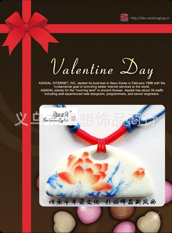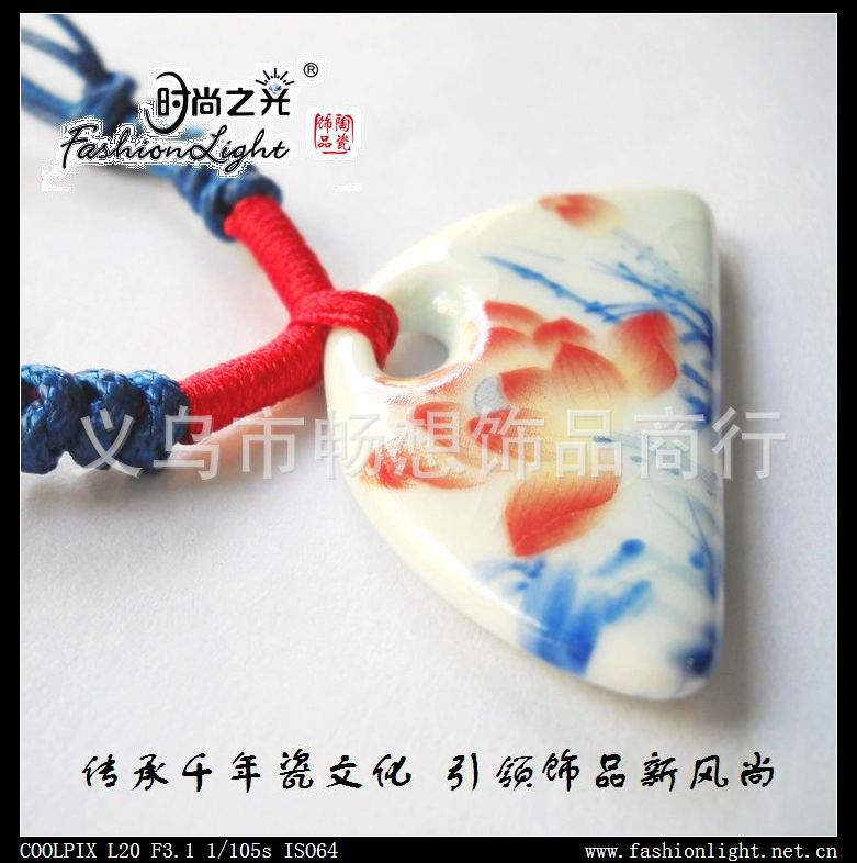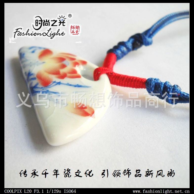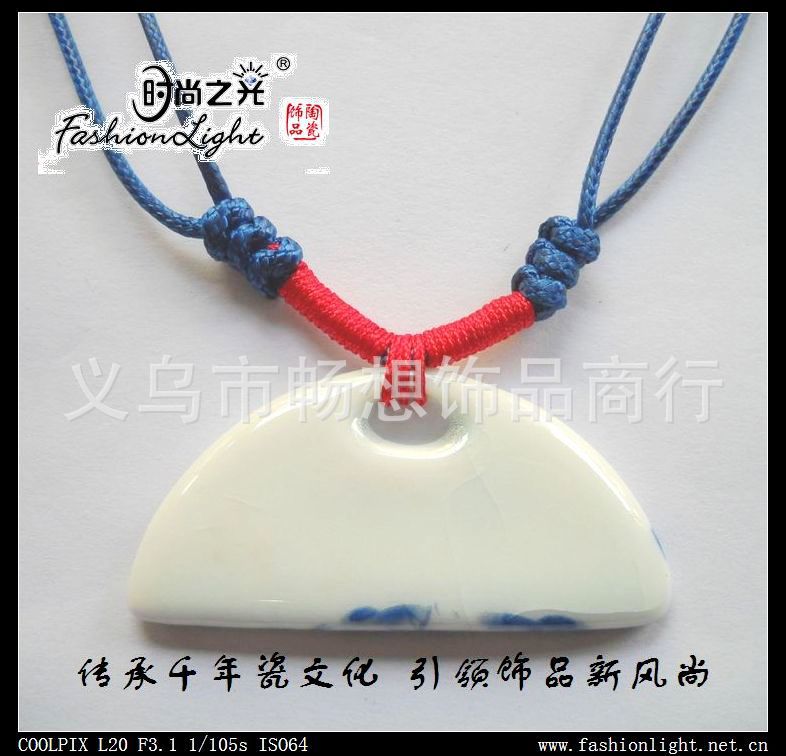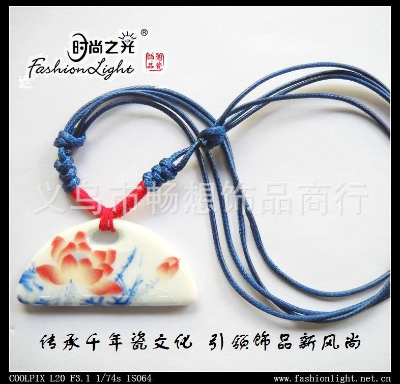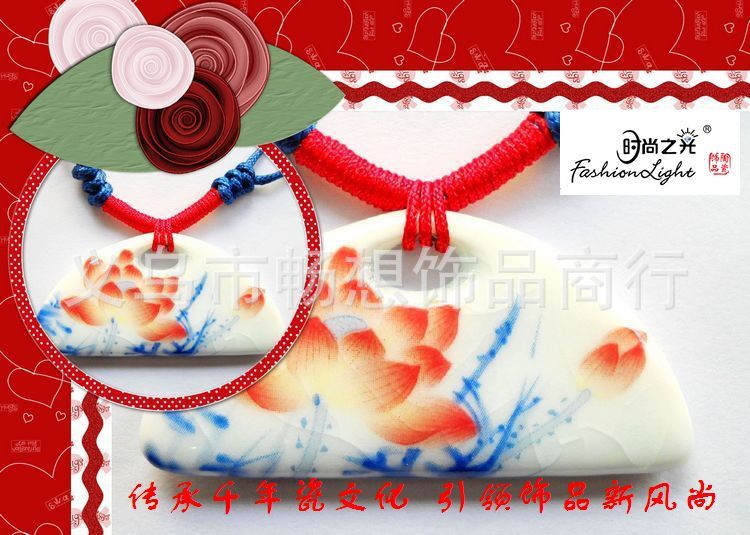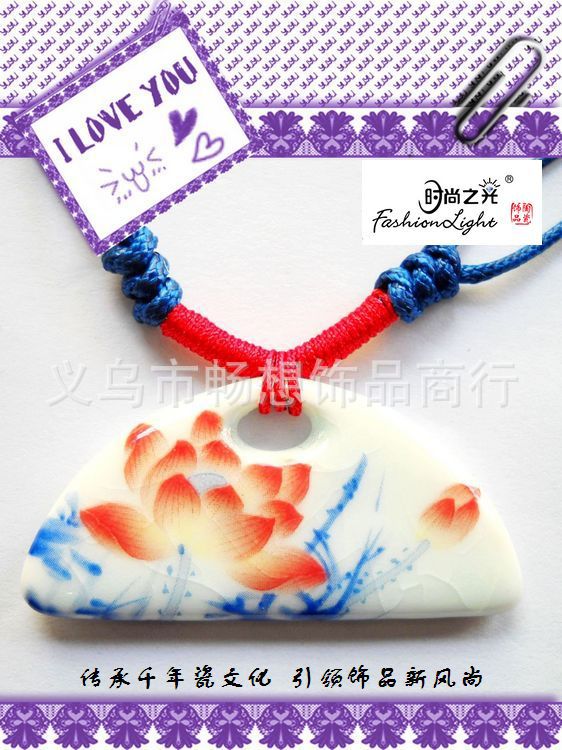 [厂家直销]时尚之光陶瓷饰品 粉彩瓷 青花瓷项链(58*28MM)