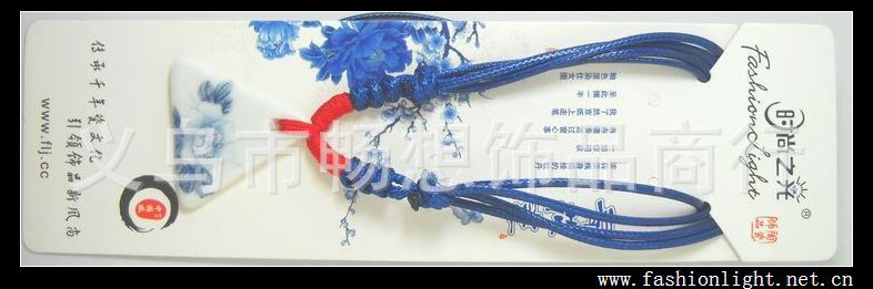 | | 产品名称 | 时尚之光陶瓷饰品 | 链子材质及长度 | 韩国蜡线、伸长可做毛衣链 | 坠子材质 | 陶瓷 | 坠子尺寸 | 35*32MM | 工艺技术 | 白瓷贴花纸 | 包装及规格 | 简易包装(有效果图片)、卡片规格20*5.5CM |