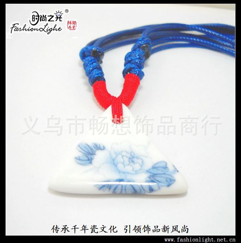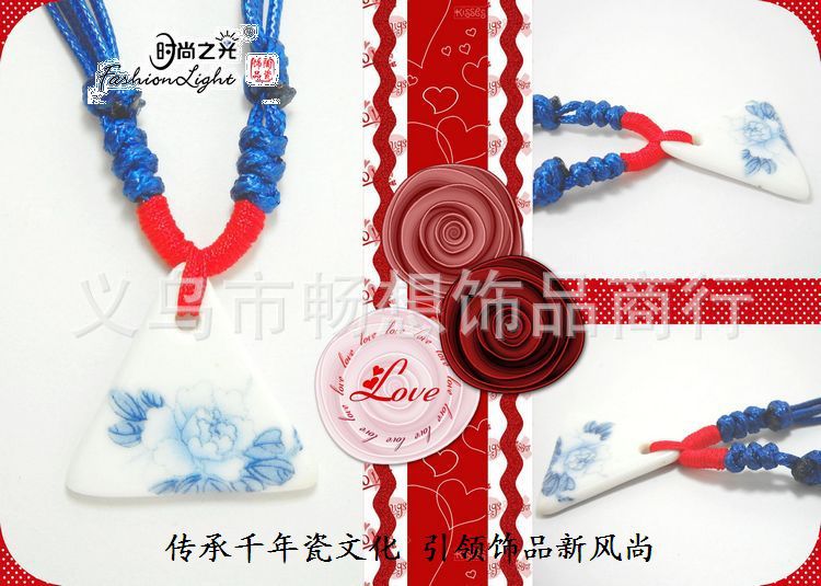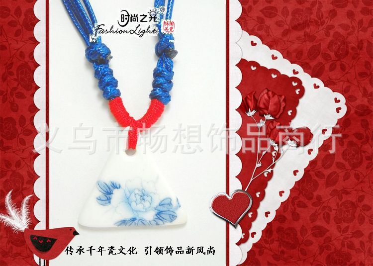 [厂家直销]时尚之光特色陶瓷饰品 环保 青花瓷项链(35*32MM)