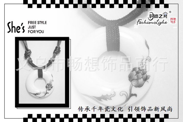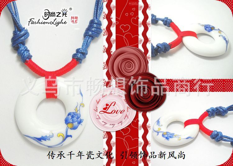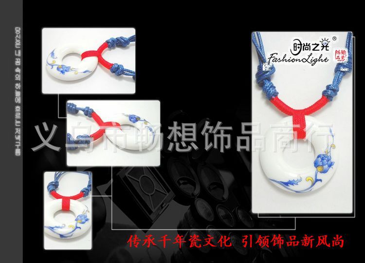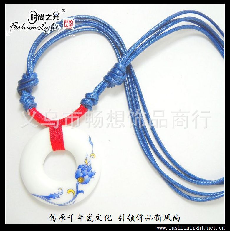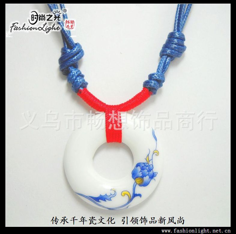 [厂家直销]时尚之光景德镇陶瓷饰品 手工 青花瓷项链(37MM)