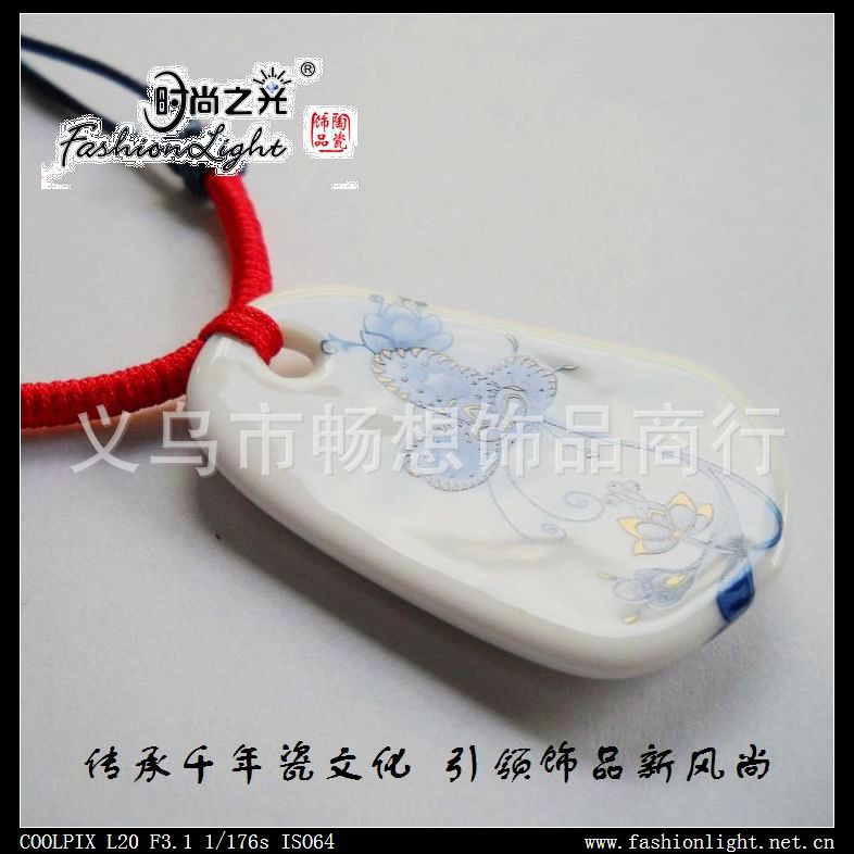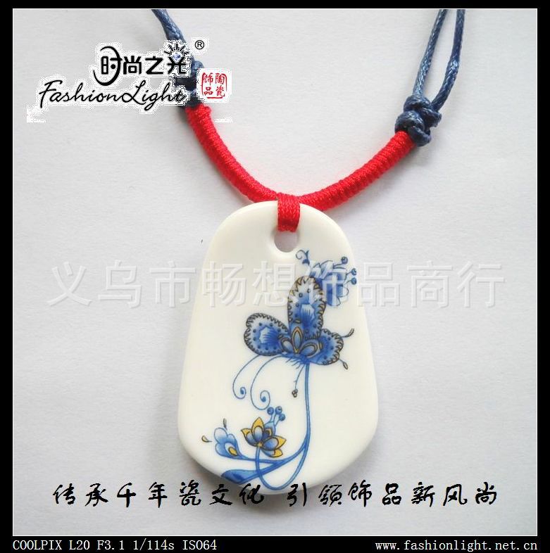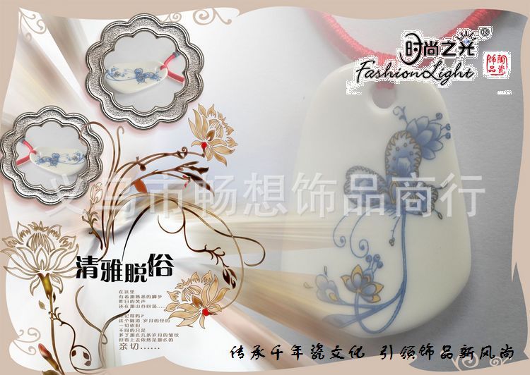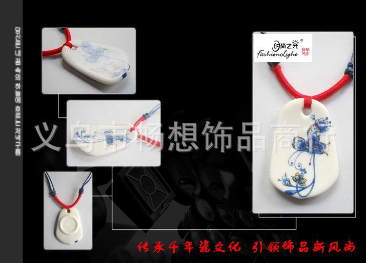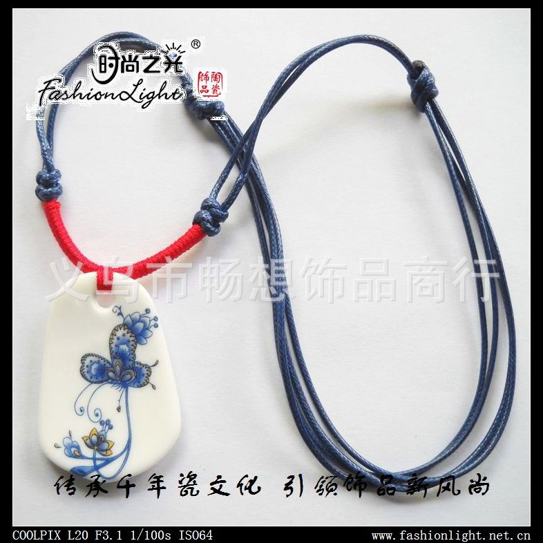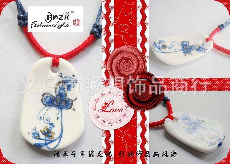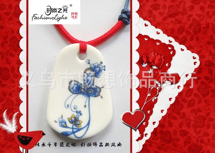 [厂家直销]时尚之光陶瓷饰品 青花瓷 美人瓷项链(50*35)