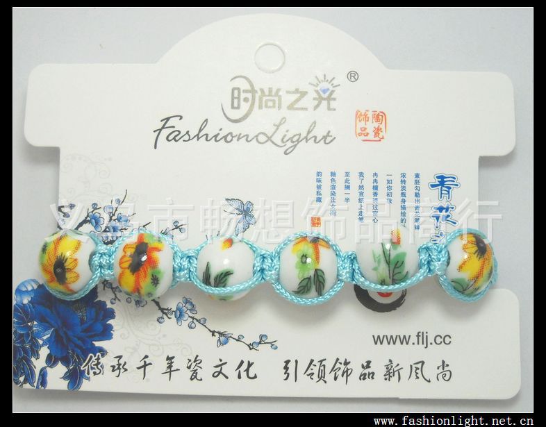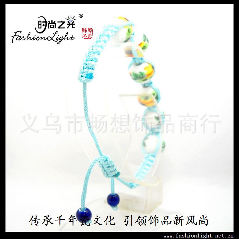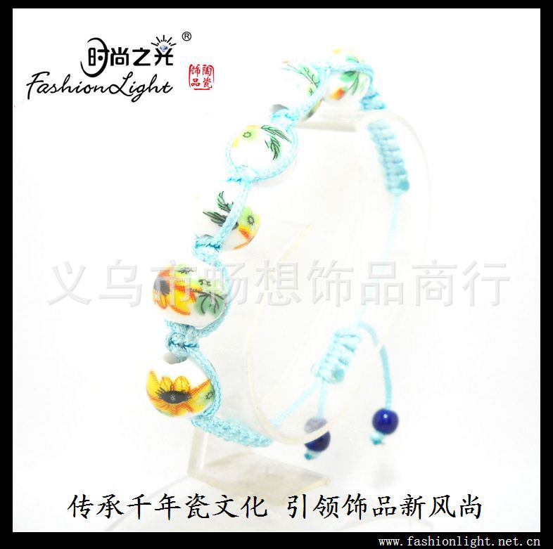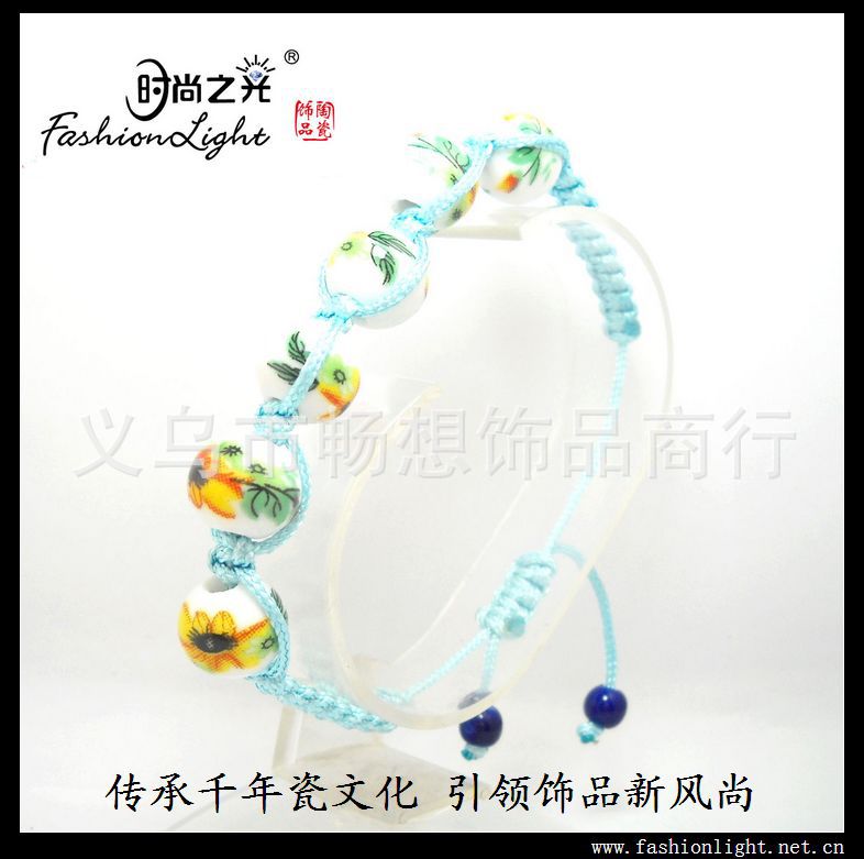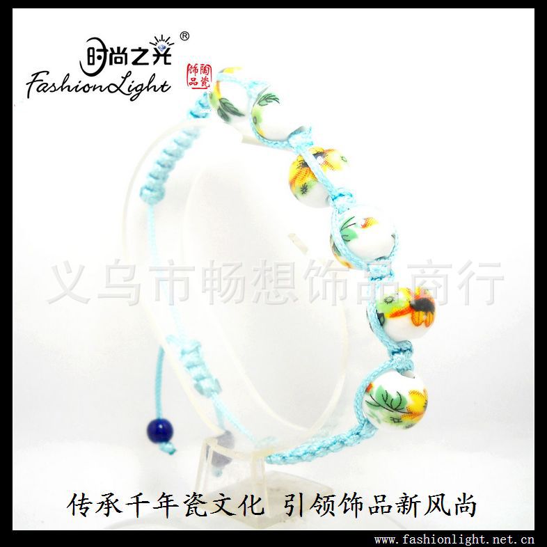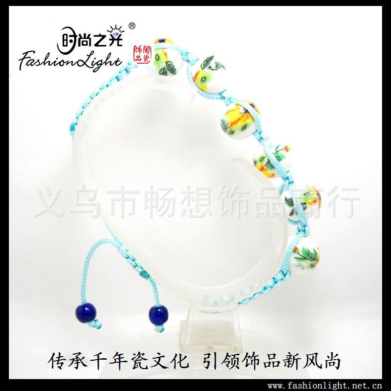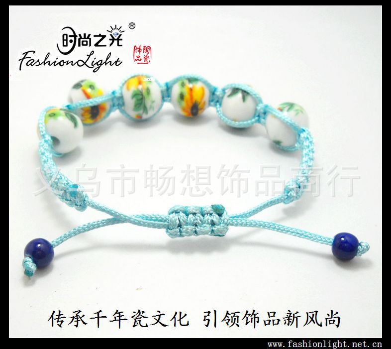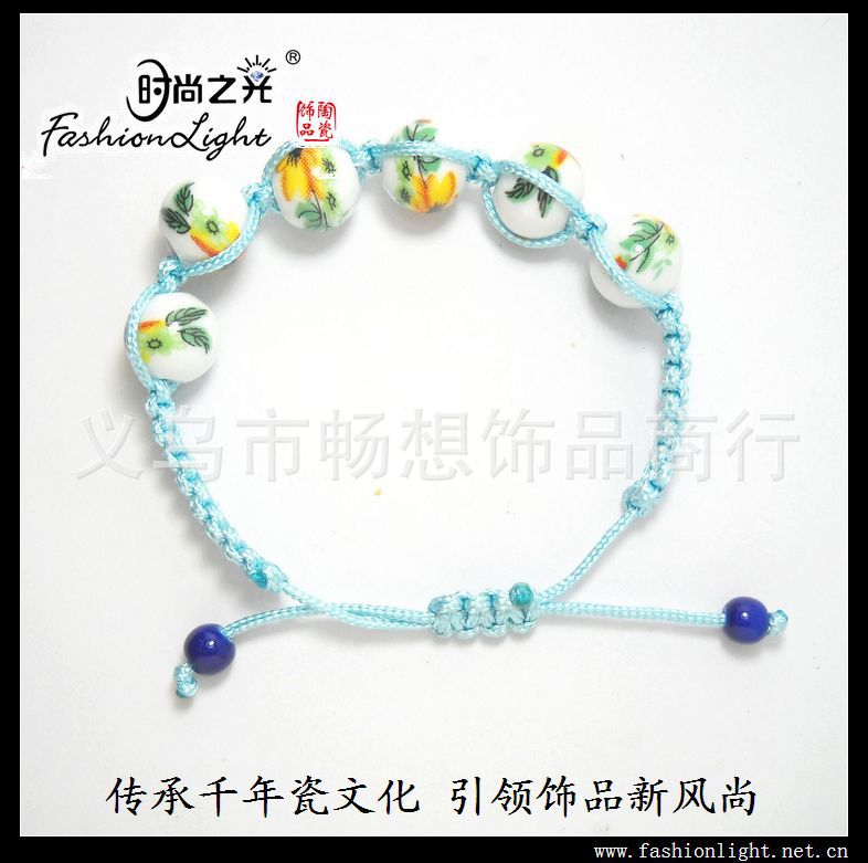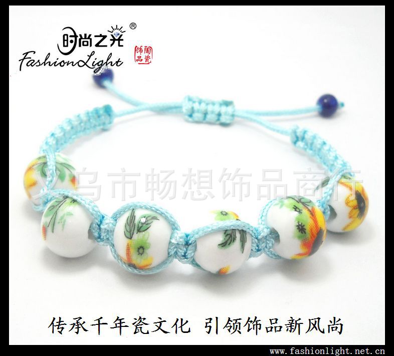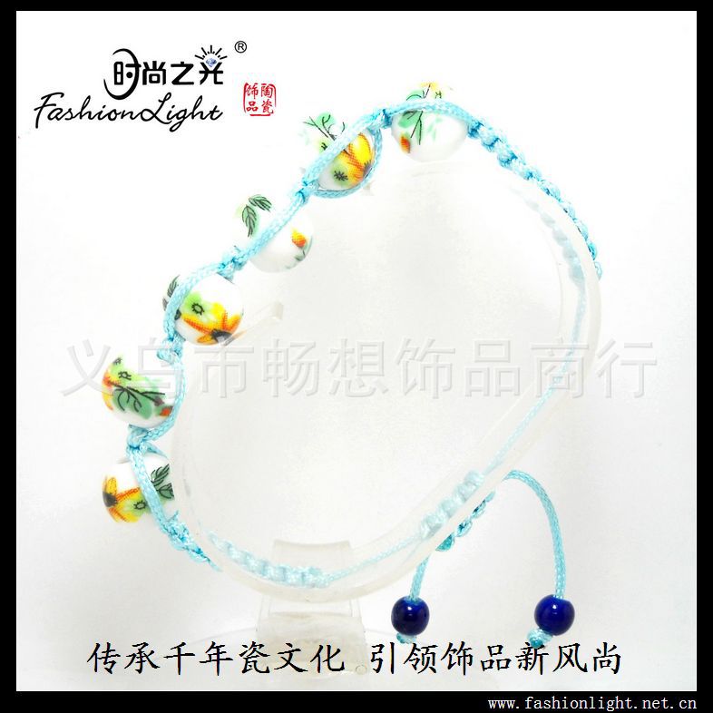 [小额批发]时尚之光民族陶瓷饰品 手工女式 粉彩瓷手链(12MM)