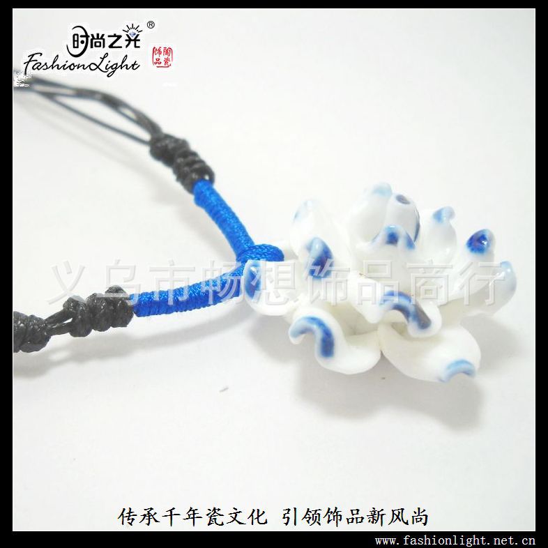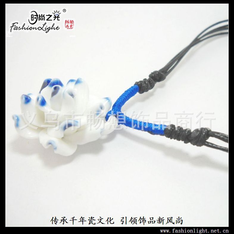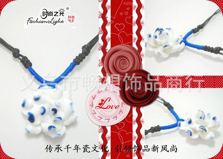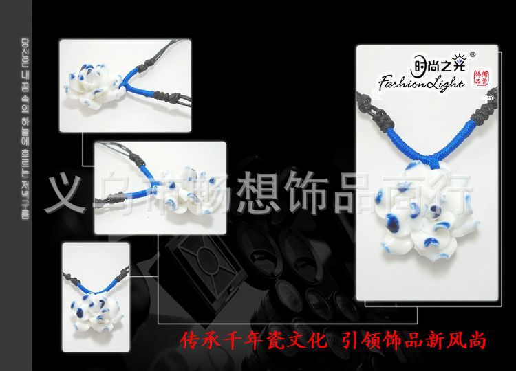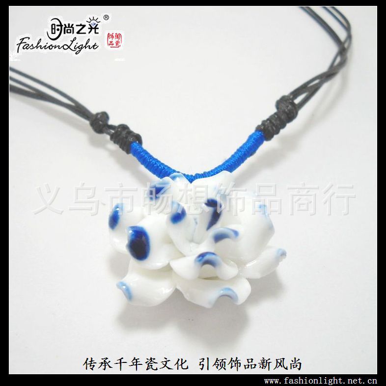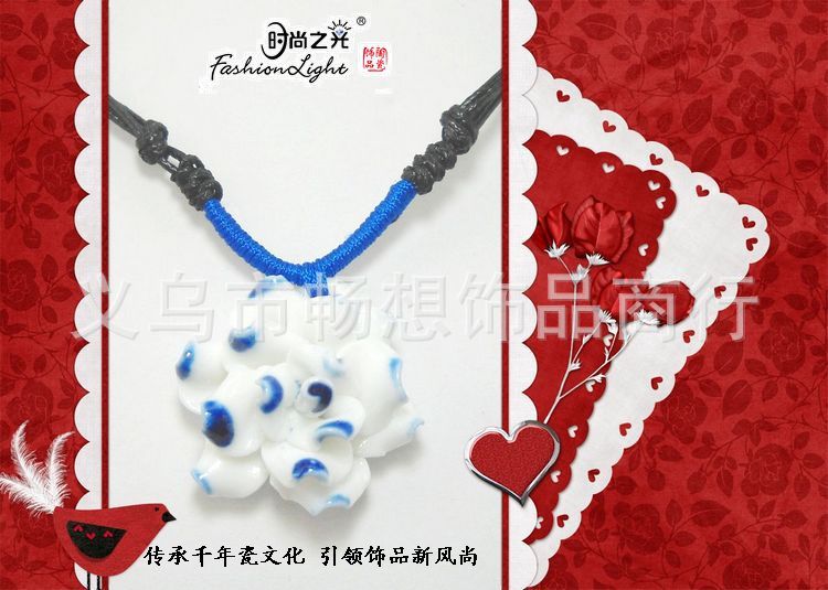 [小额批发]时尚 手工 花项链 青花瓷(32MM) 特色陶瓷饰品