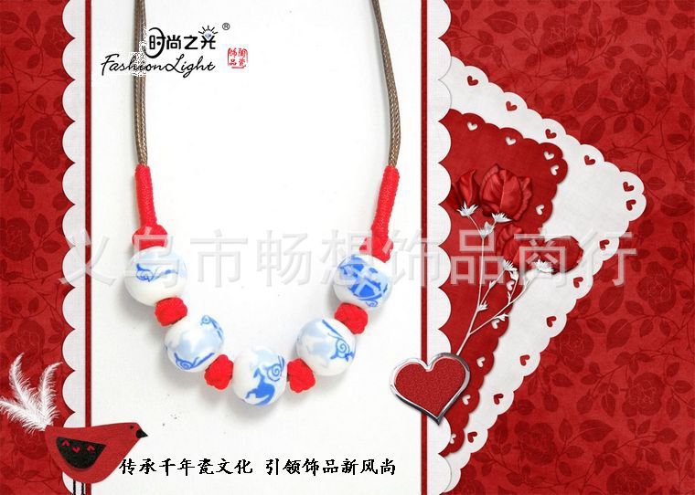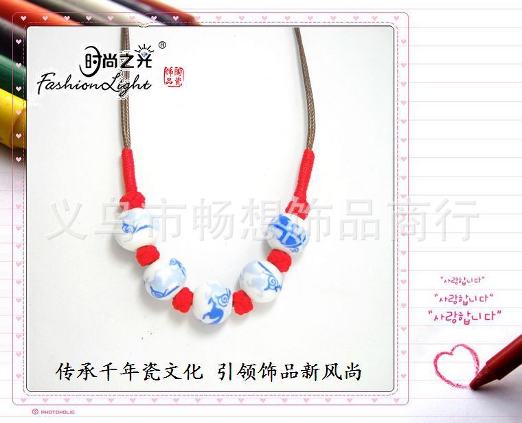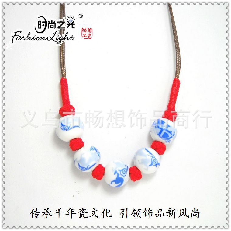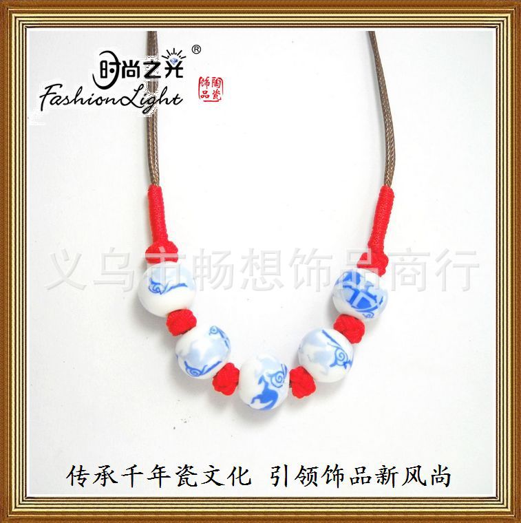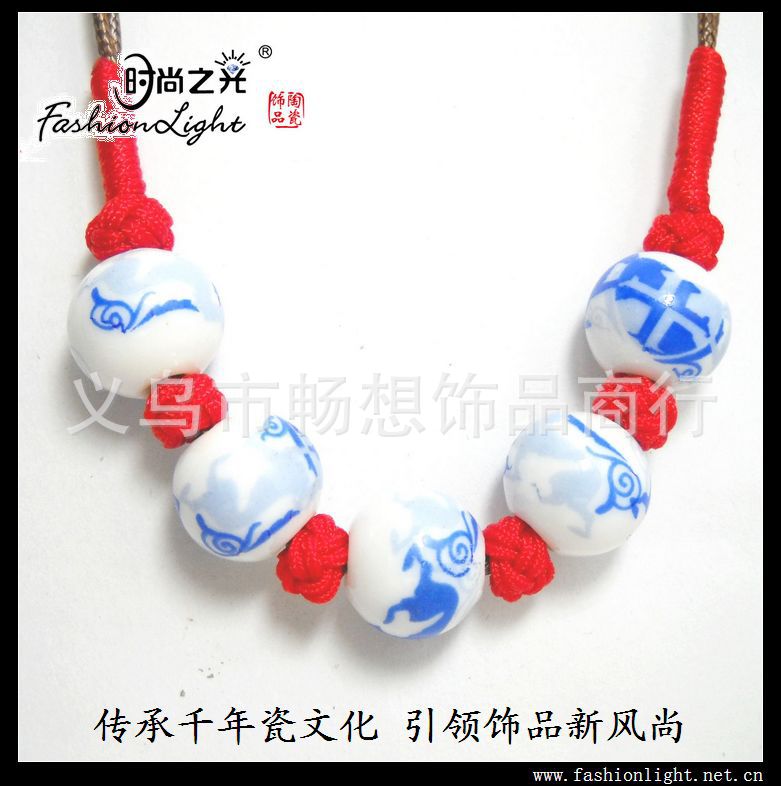 [厂家直销]时尚之光特色陶瓷饰品 青花瓷 美人瓷珠项链(12MM)