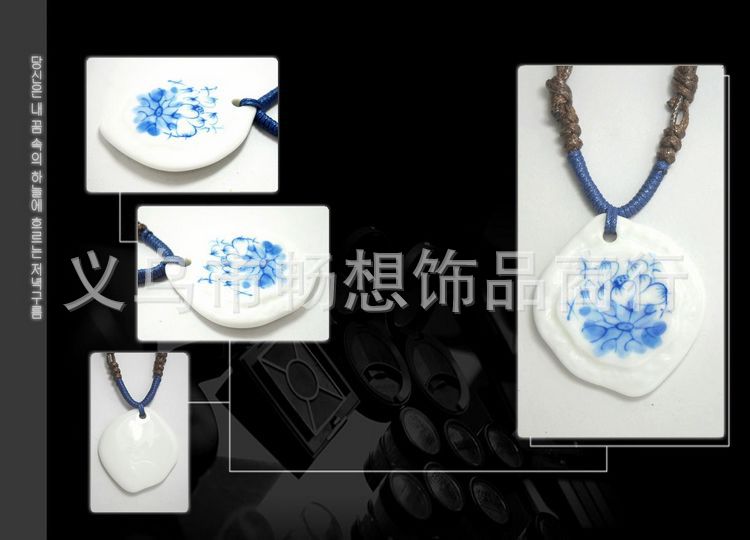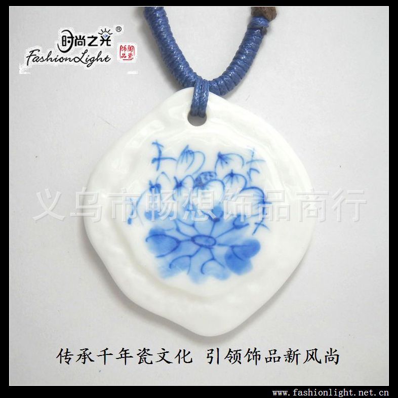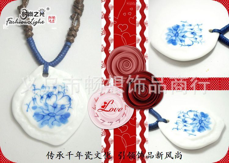 [厂家直销]时尚之光陶瓷饰品 手工 青花瓷项链(52*48MM)