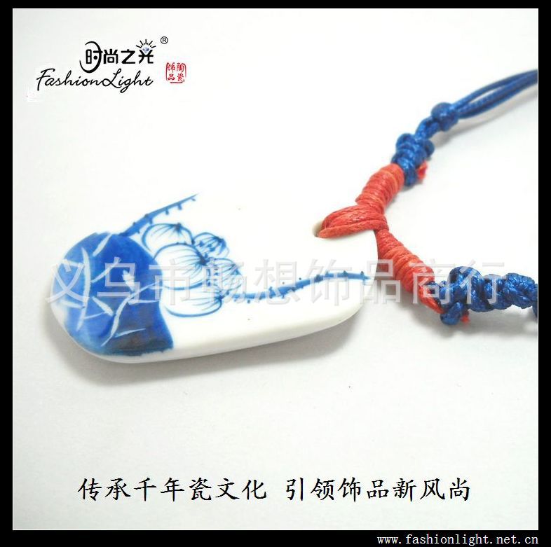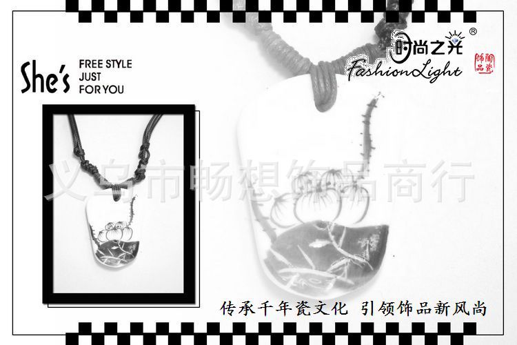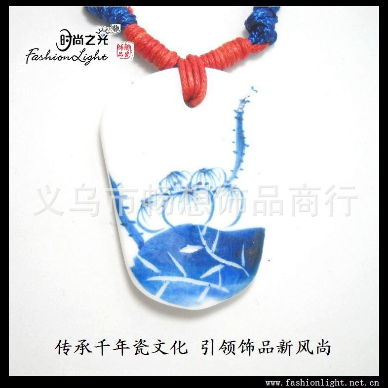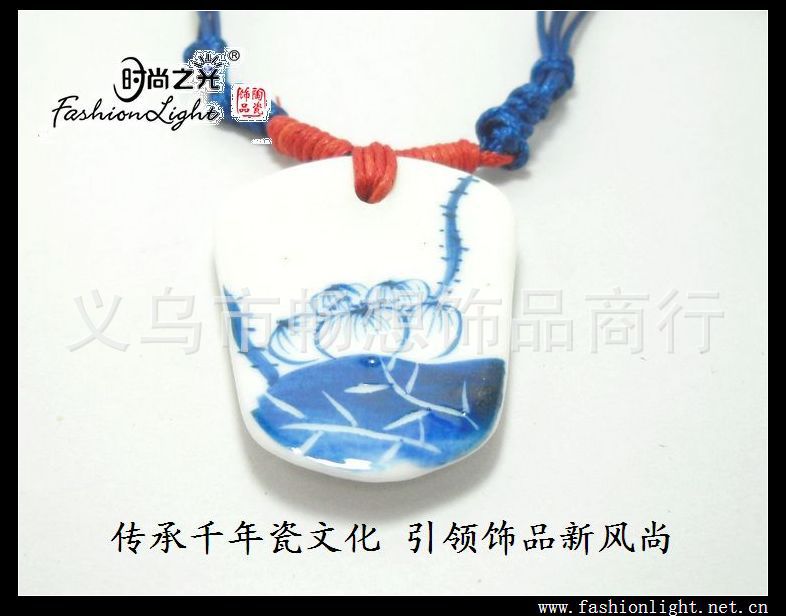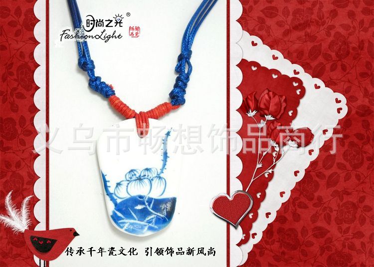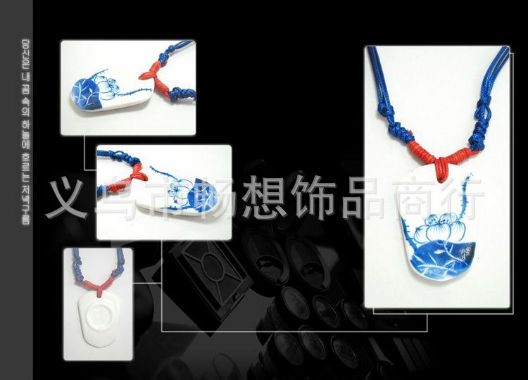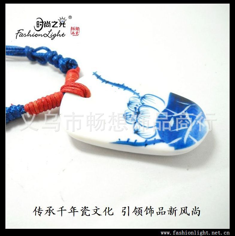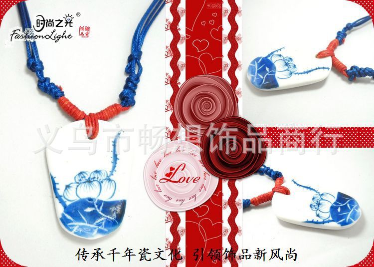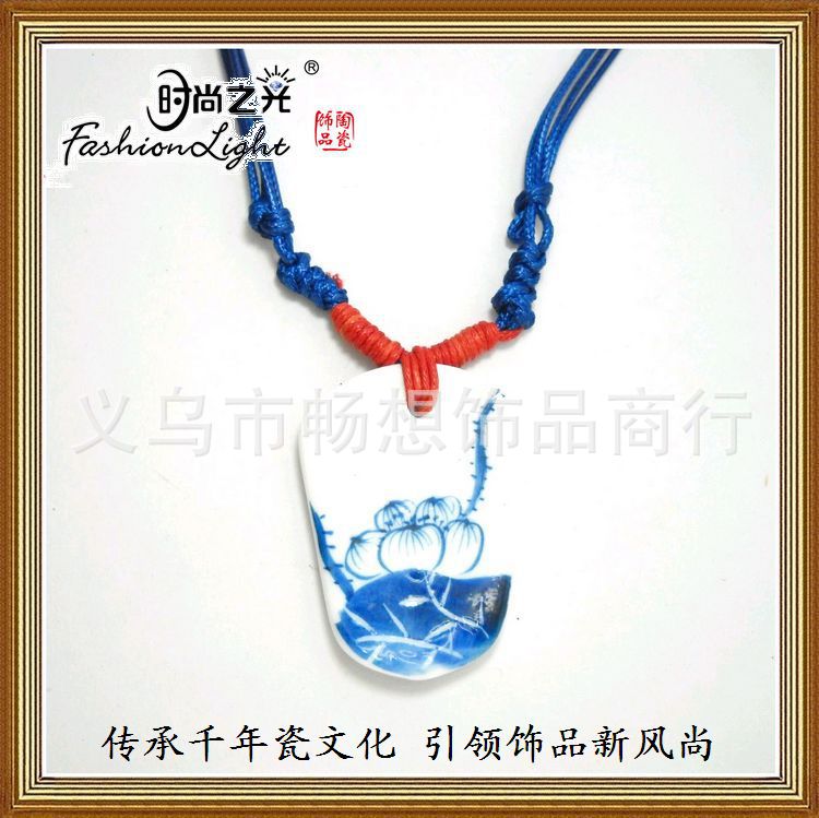 [厂家直销]时尚之光特色陶瓷饰品 手工 青花瓷项链(46*33MM)