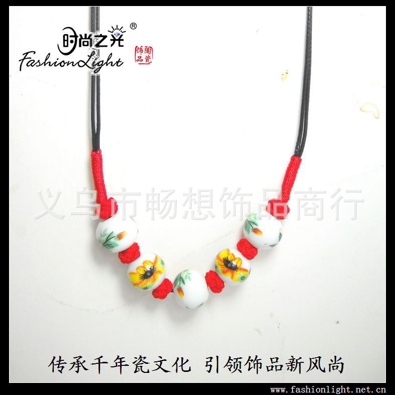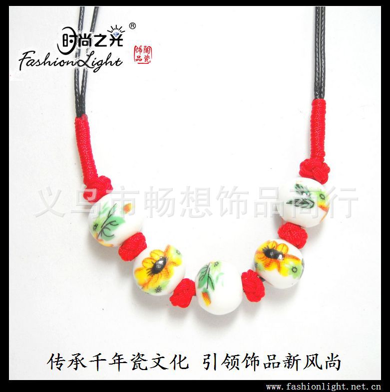 [厂家直销]时尚之光民族陶瓷饰品 女式短 美人瓷珠项链(12MM)