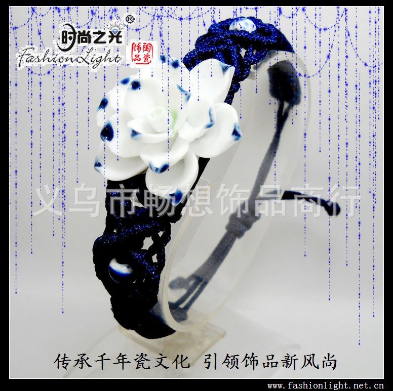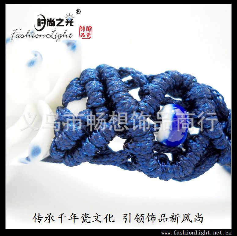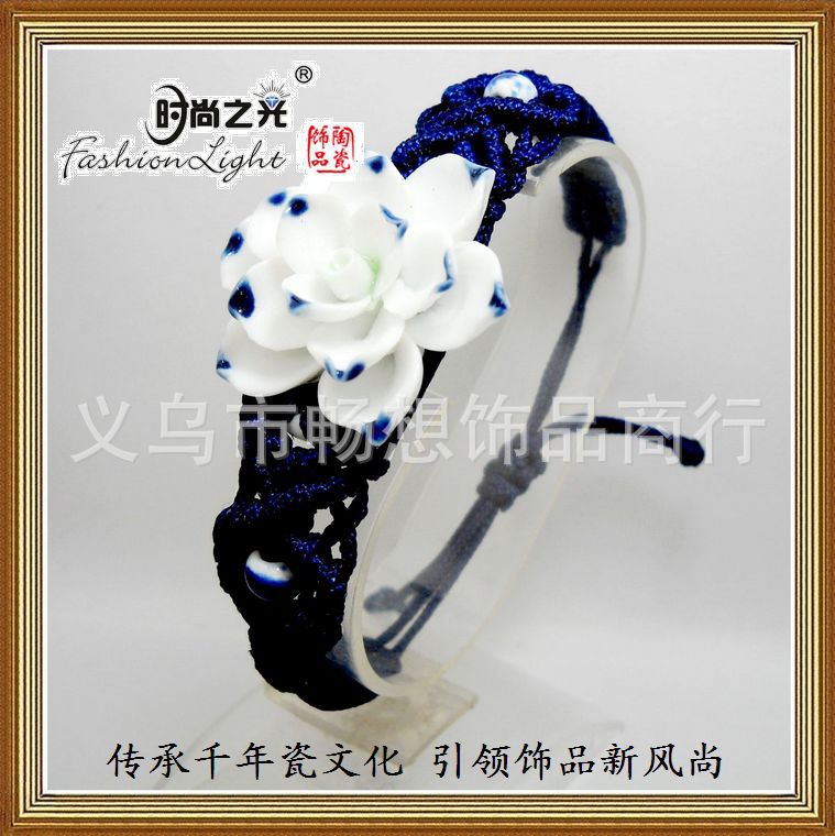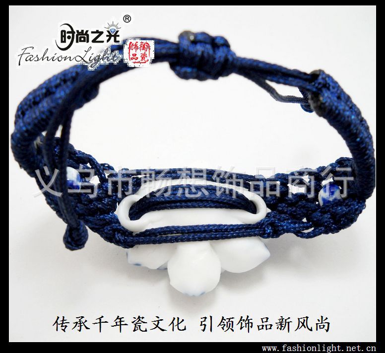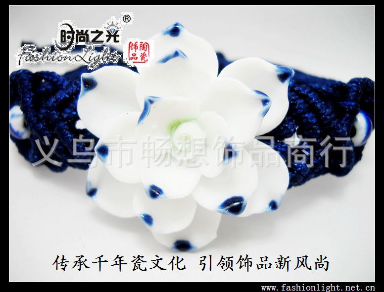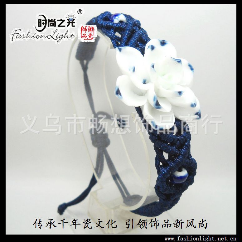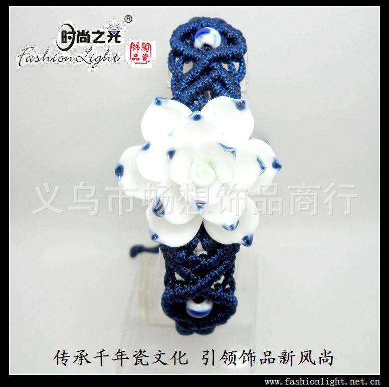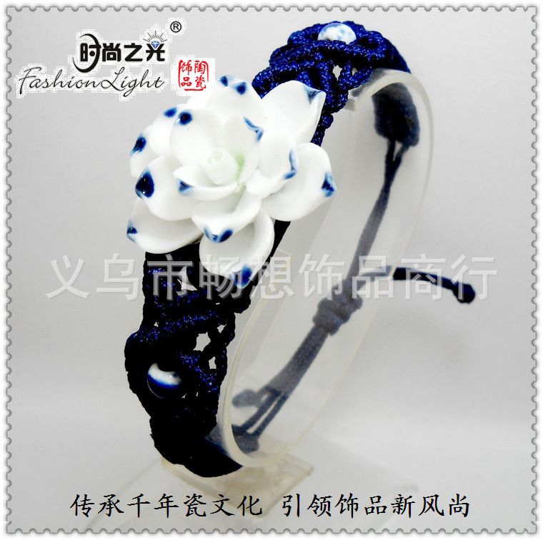[厂家直销]景德镇民族陶瓷饰品 青花瓷 花手链 节日礼品(35MM)
