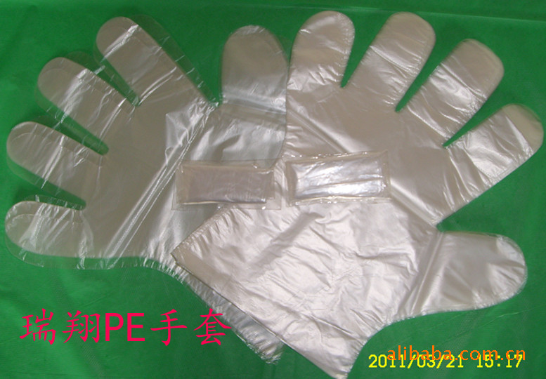 瑞翔一次性PE薄膜手套采用全新的聚乙烯原料,配以其他助剂精制加工而成,色泽光亮,透明,厚薄均匀,穿戴方便、舒适。