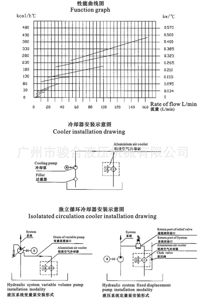 型号 | 电源 | 输入功率 (W) | 输入电流 (A) | 进出油口 (inch) | 适用流量 (L/min) | 散热能力 (W/℃) |