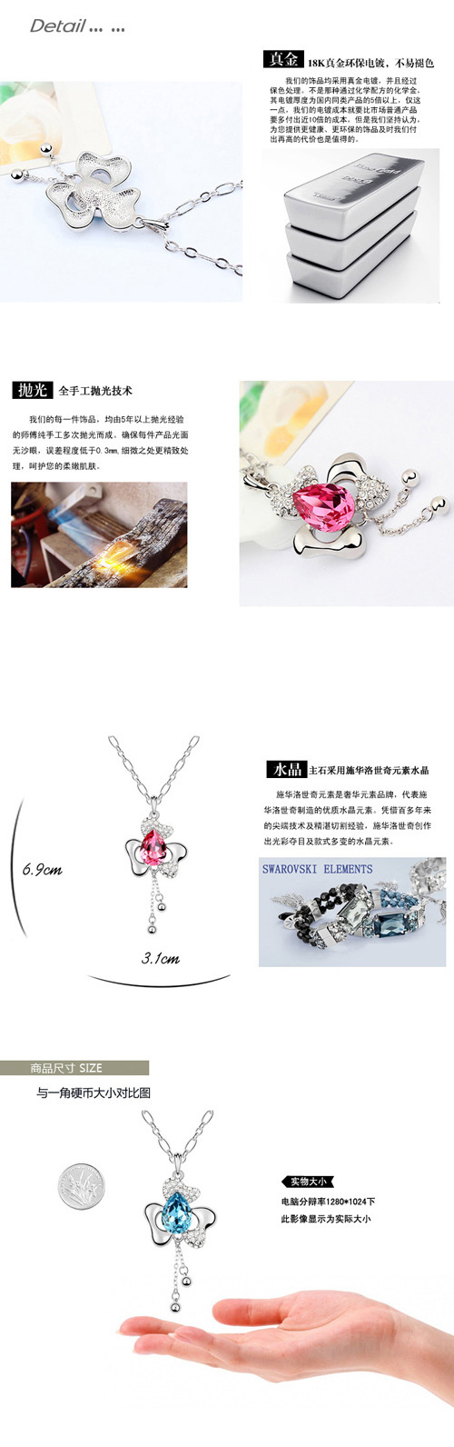 商品材质 | 环保合金电镀18K真金,奥钻,施华洛水晶 |