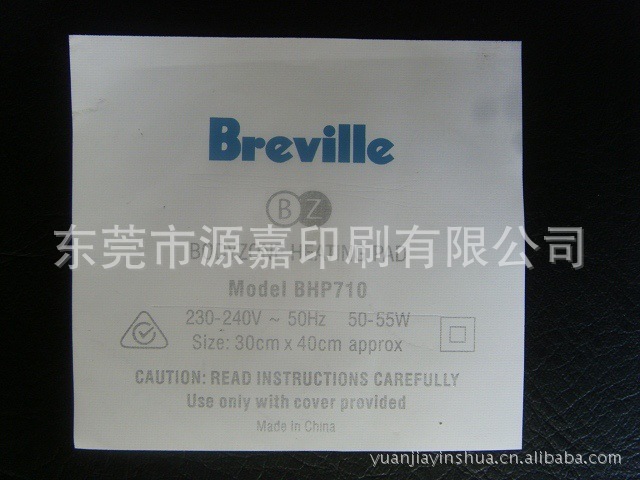 产品介绍:东莞源嘉印刷有限公司东莞源嘉印刷厂专业提供电子、电器、玩具、礼品、日化、医疗、文教、五金、食品、等多行业产品标签、贴纸。客户可自行定制各类任何规格的不干胶标签、不干胶贴纸,公司采用艾利、琳得科、新冠、富洲不干胶材料,客户也可选择其他公司的不干胶材料。 公司秉着质量第一,顾客至上,价格公道的原则,为客户打造一站式的便捷服务,本市大额订单,可送货上门,外地可发物流,或快递.欢迎来人来函,洽谈业务。★注 意:以上产品均可在3-5天打样,样品满意订货后,7天内发货,急需情况下可7天内发货。所发图片都是样品,展示品,价格也仅供参考,具体价格要根据您的材料及规格要求来定;因为用料厚度、印刷色数、数量都有不同,再加上原材料的价格不定,所以我们的商品不以一口价为准。