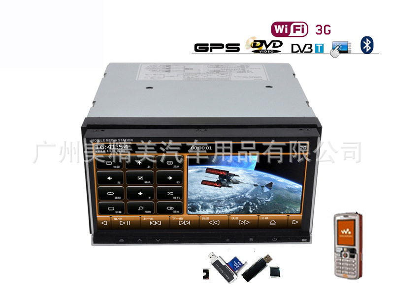 功能:6.95寸屏+DVD+USB/SD接口+4G卡 3D地图+凯立德地图+FM+蓝牙+WIFI+3G,DVD导航一体机