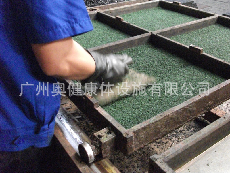 2. 合成橡胶面层施工前,如仍有小部分积水现象,必须使用双组份型PU经搅拌机搅拌均匀后(约五分钟),填平凹处,经十二小时后即可铺设合成橡胶面层;