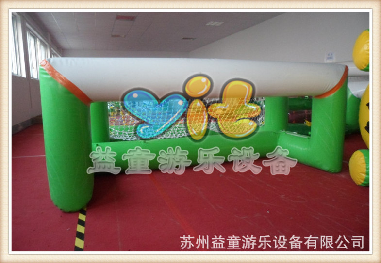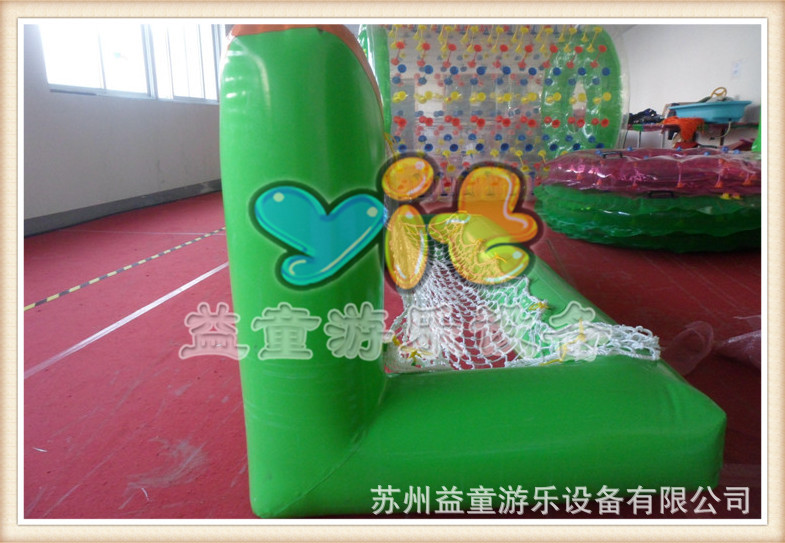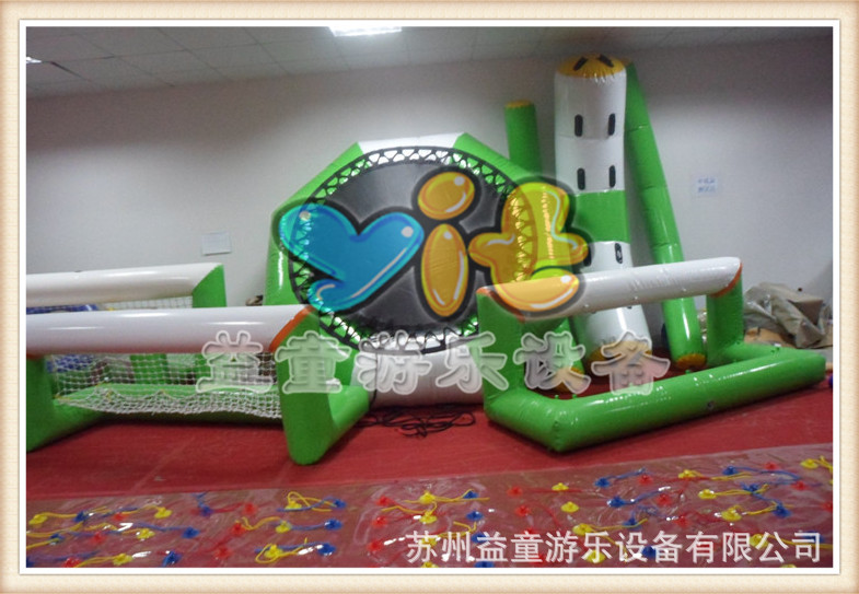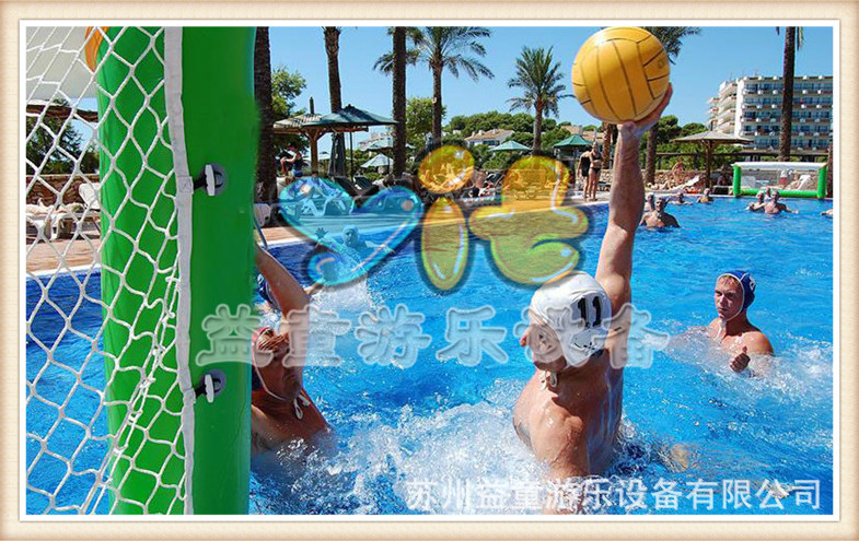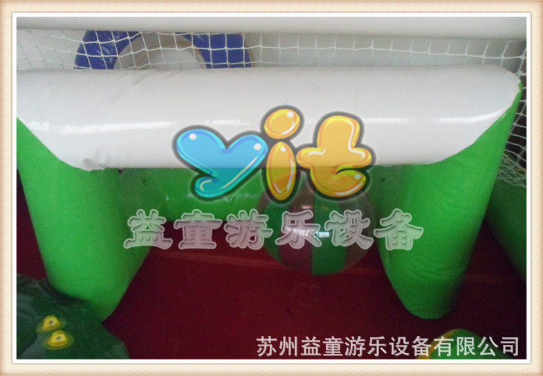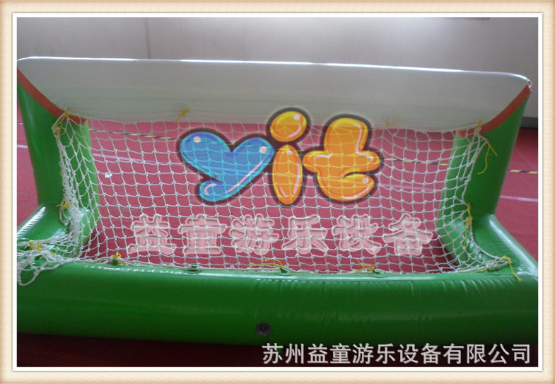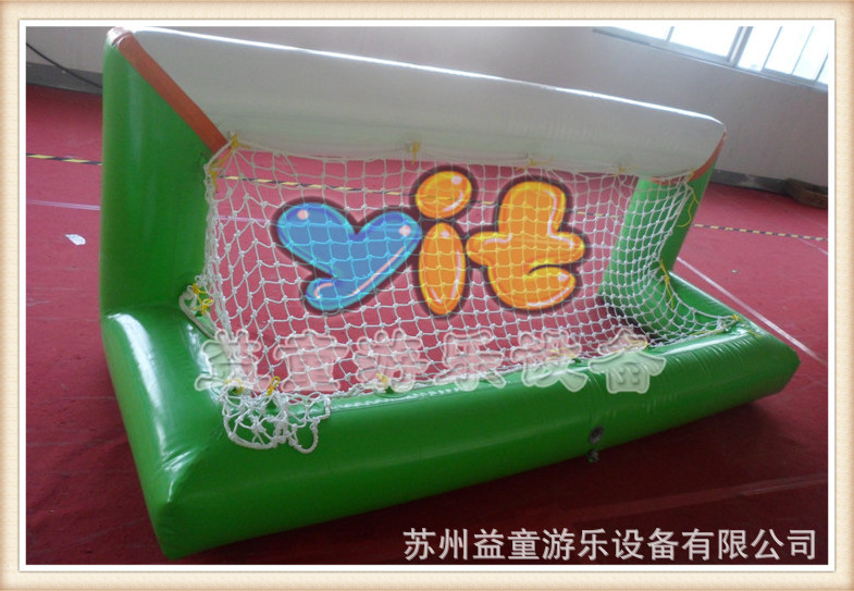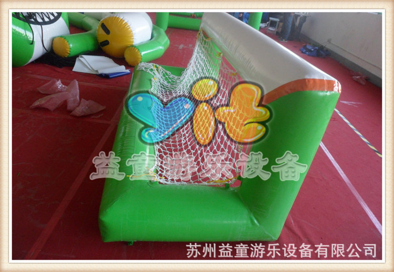 充气水上足球门又称水上球门。产品设计新颖结构合理、游玩简单方便。可以是一个组成在陆地上或漂浮在水面上的水球运动场。给足球运动和水球运动又增加了新的内容。穿上游泳衣,然后开始比赛。想象在水面上跃起,看准球的落点,进球得分。此产品是水上游乐世界中受广大游客喜爱的游乐项目之一。广泛适合于公园、游乐场、广场、大型超市等公共娱乐场所。该产品可以单独在陆地上加水后使用,也可以单独组合在水上乐园项目内使用。
