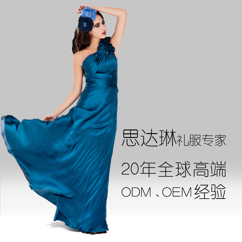 单肩淡雅气质演出晚礼服定制 外贸晚礼服小礼服宴会礼服定制批发