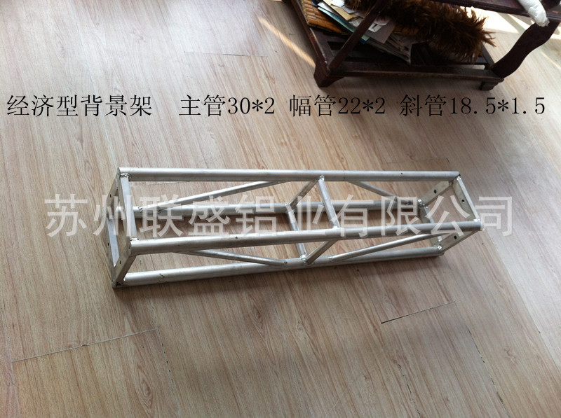 用料国标6061-T6铝材,适用于专业流动室外演出,户内展览架,适合广大租赁商和展览公司使用,其具有拆装方便,存放占地空间小,耐用、可多次反复使用,亦可根据场地大小任意组合,坚固安全,美观高档,造型多,成本低等优点,配套本厂生产的接头组合可以搭建出各种想要的效果和造型